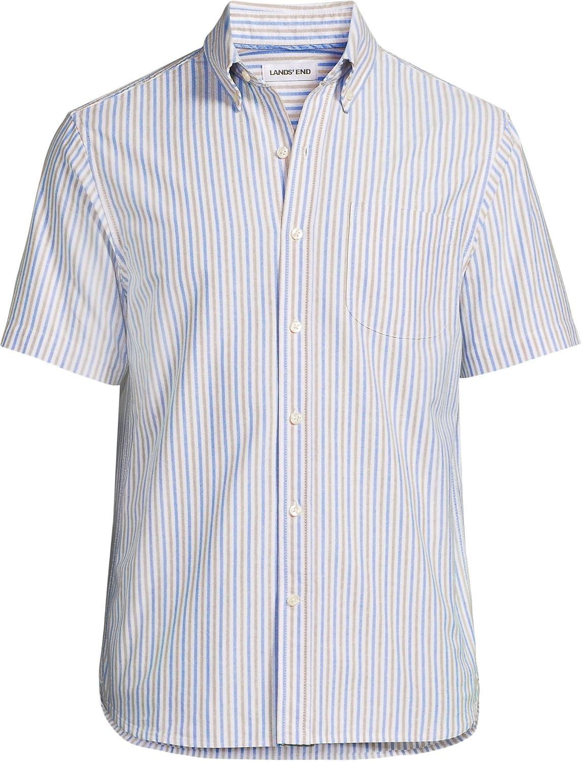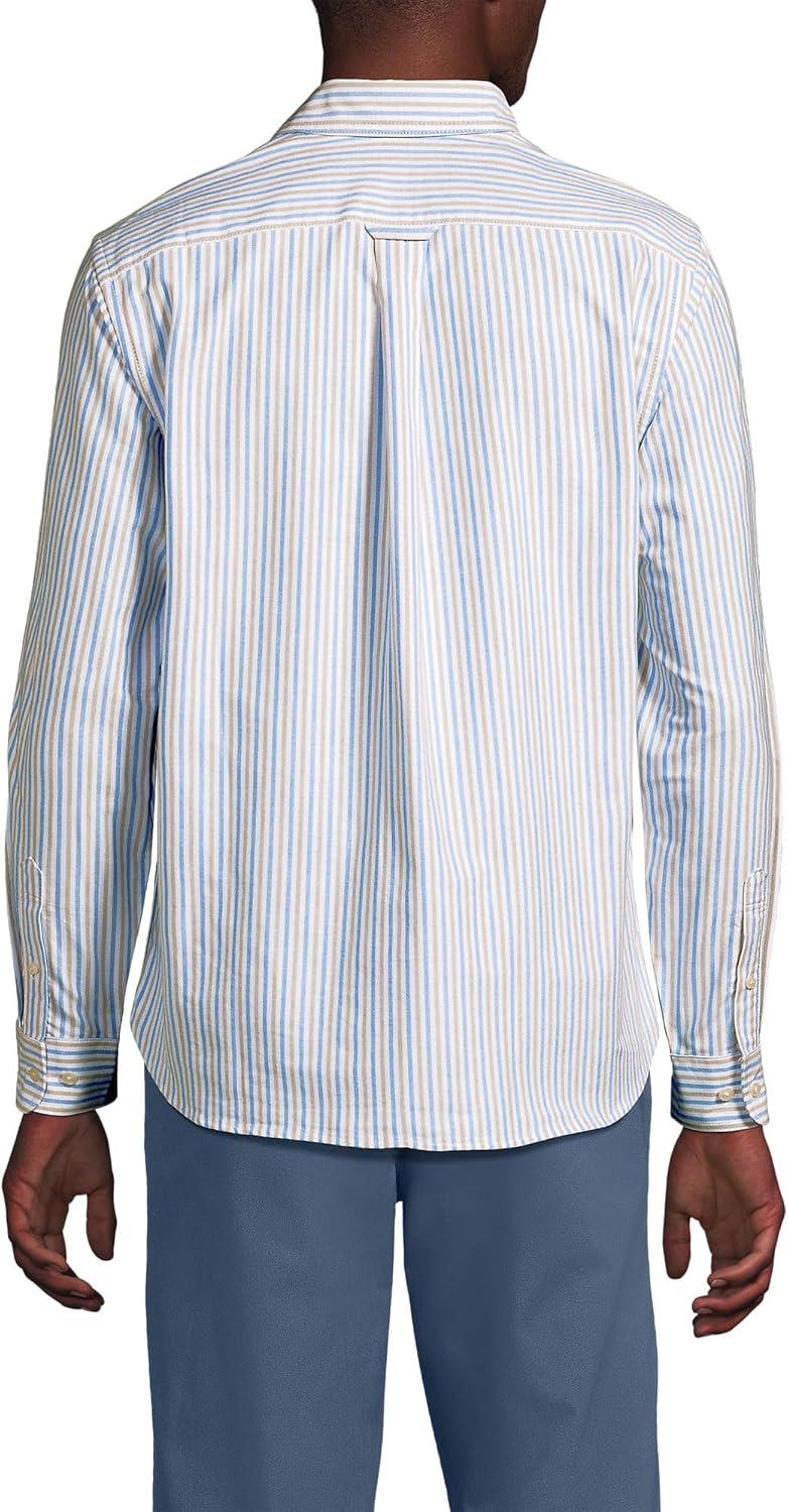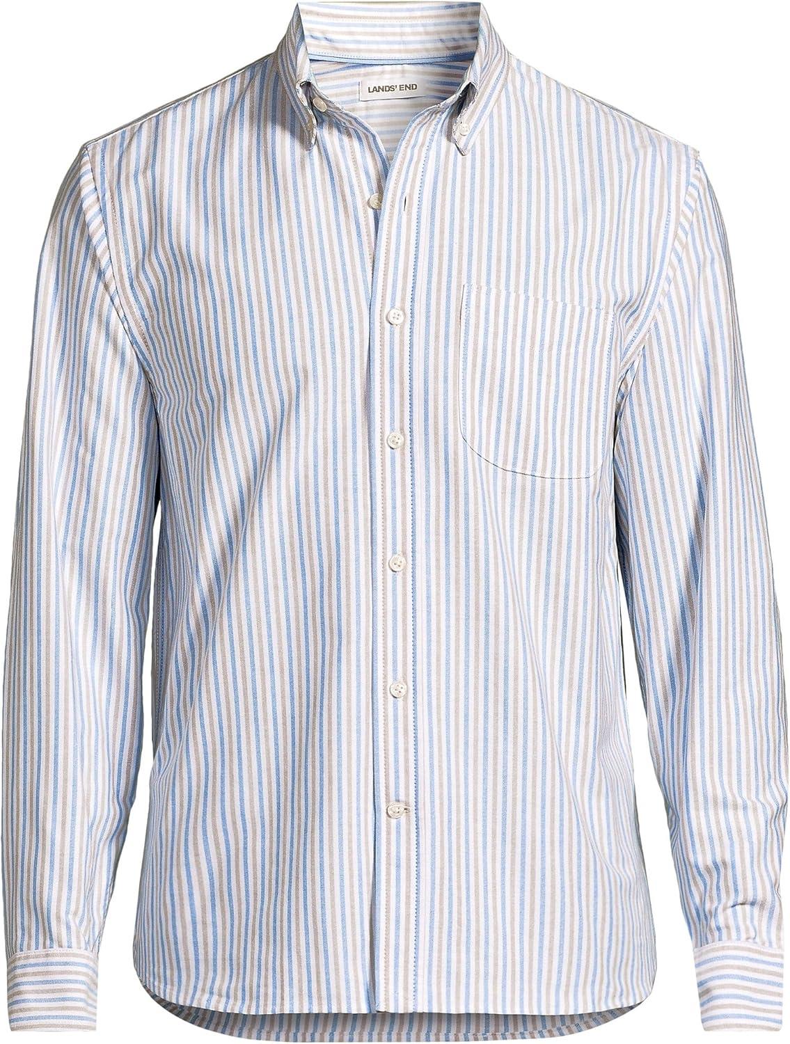 Lands’ End Men’s Traditional Fit Comfort-First Sail Rigger Oxford Shirt(Clear Blue /Khaki Stripe)