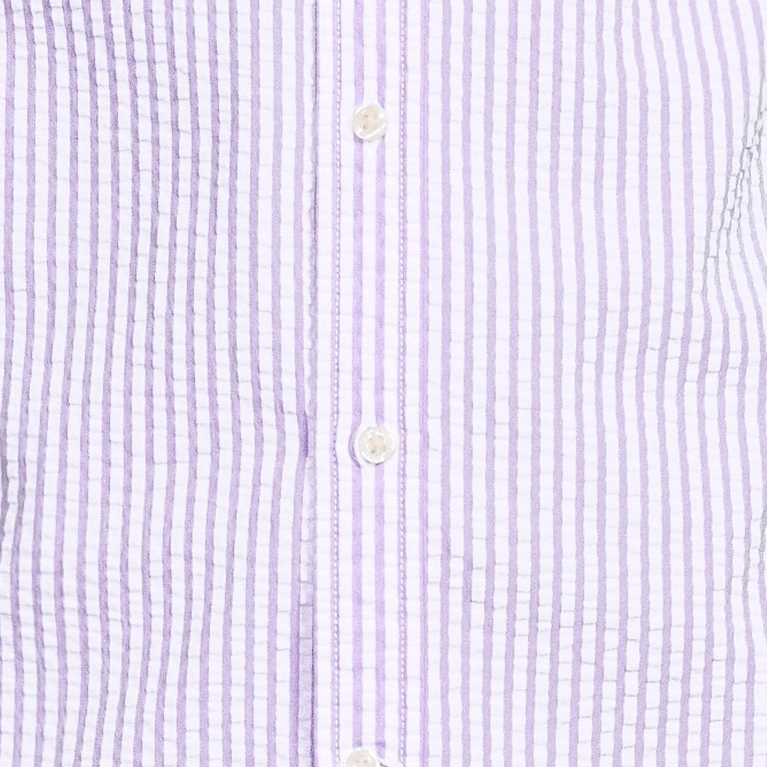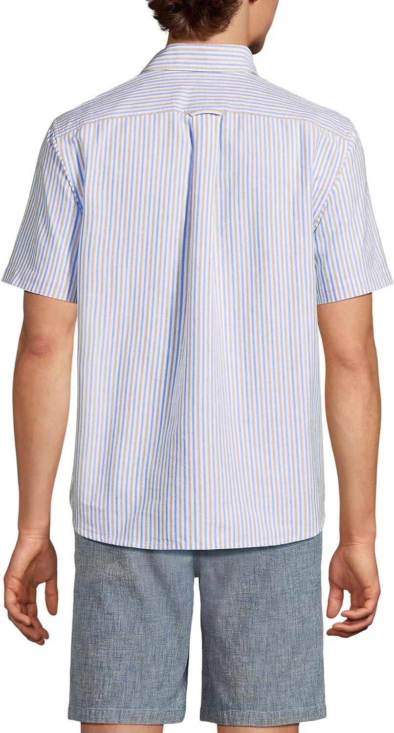 Lands’ End Men’s Short Sleeve Seersucker Shirt(Golden Sand Banker Stripe)