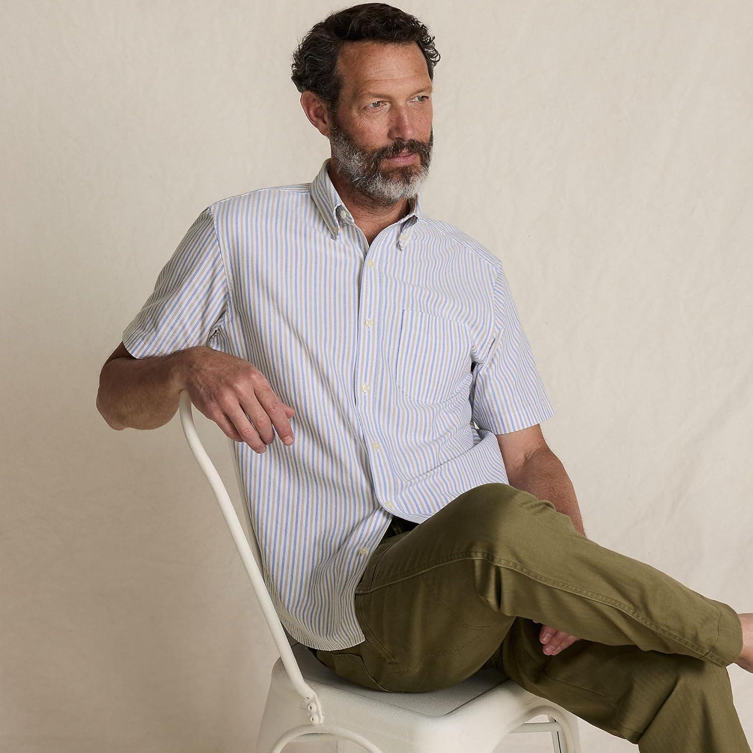 Lands’ End Men’s Short Sleeve Sail Rigger Shirt(Clear Blue /Khaki Stripe)