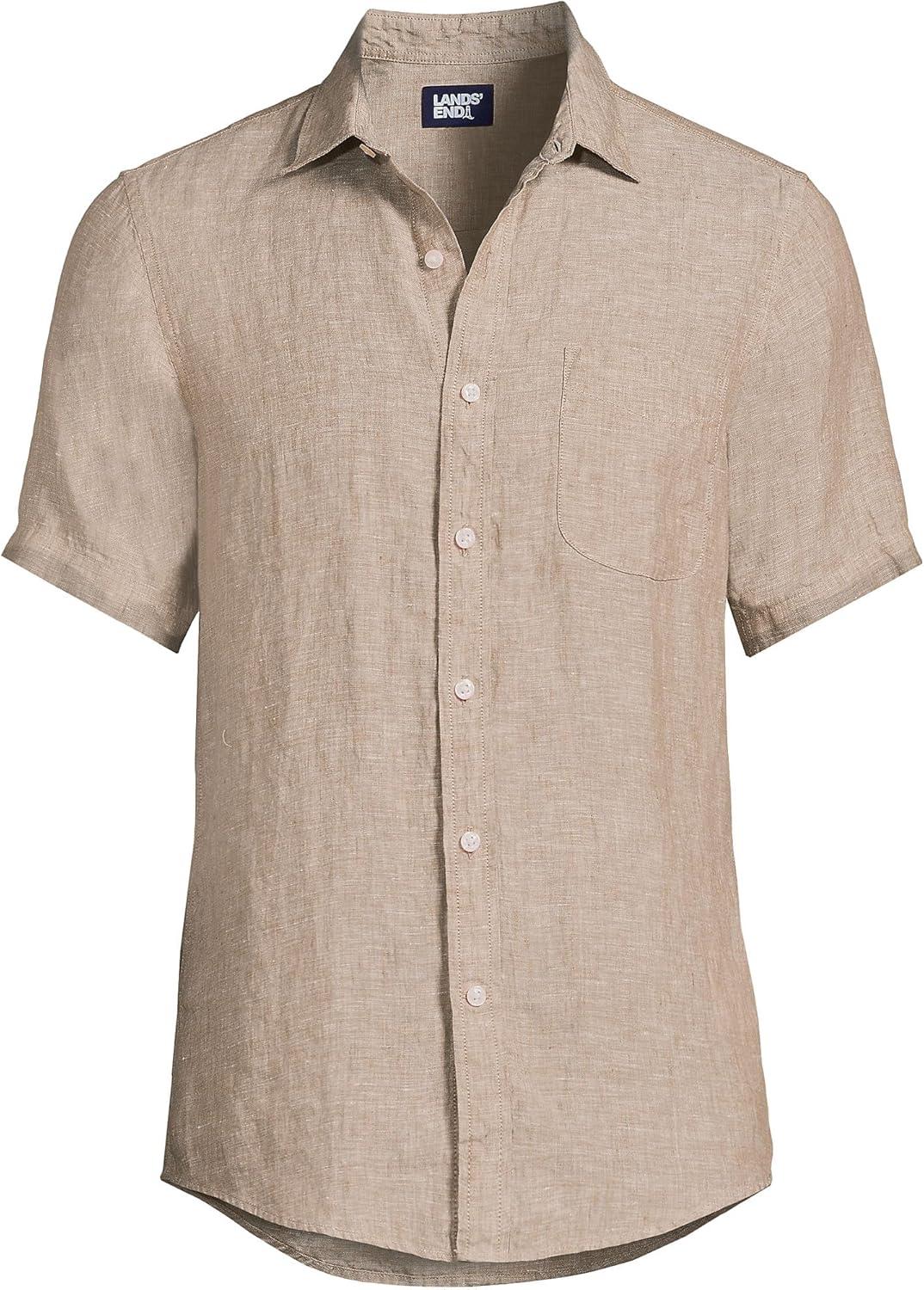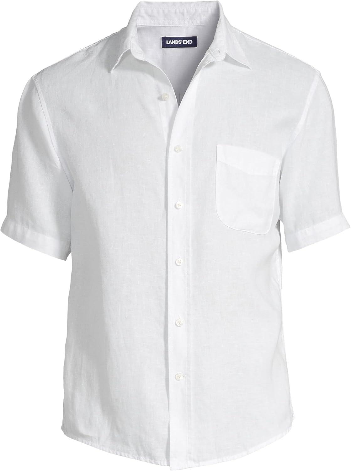 Lands’ End Men’s Traditional Fit Short Sleeve Linen Shirt(White)