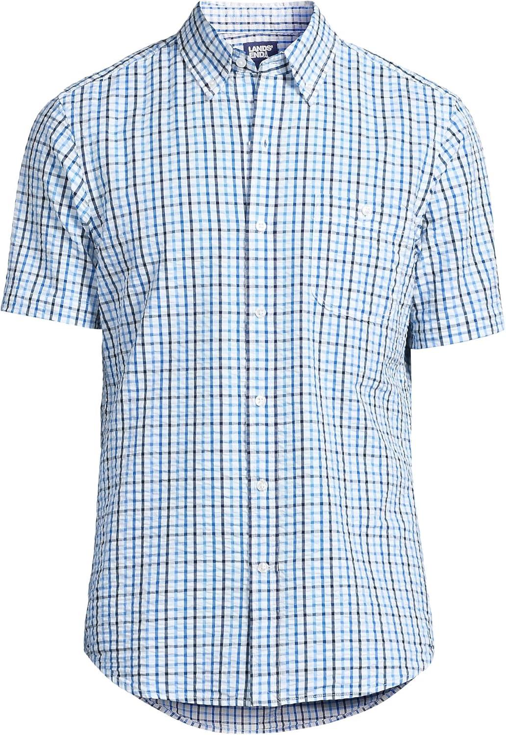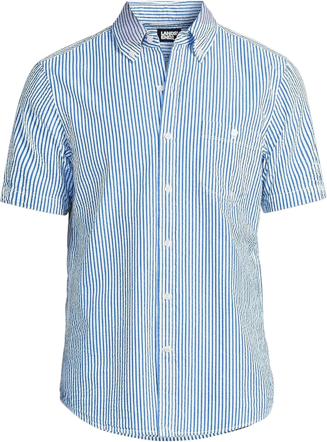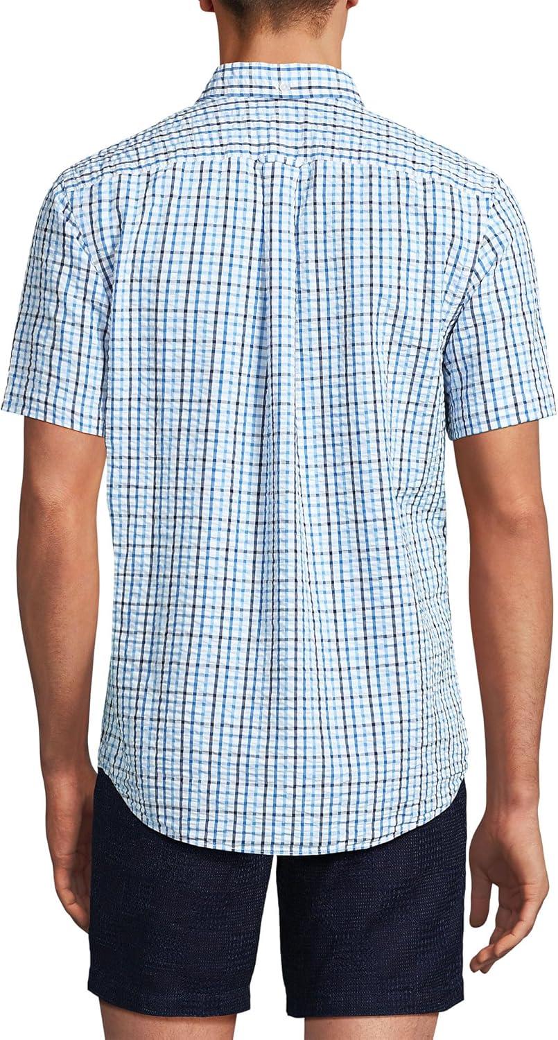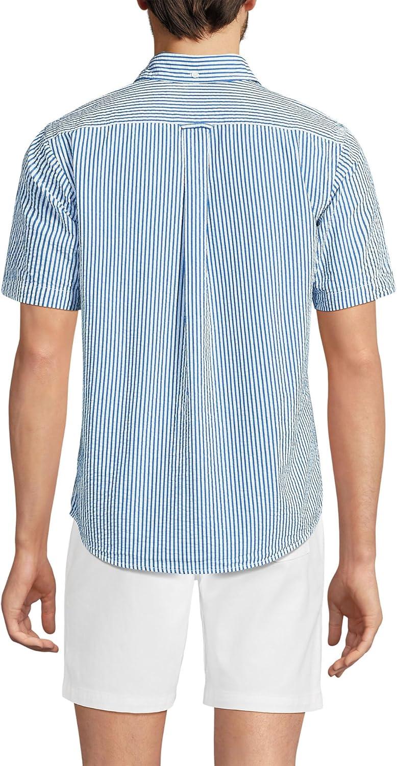 Lands’ End Men’s Short Sleeve Seersucker Shirt(Deep Sea Navy)