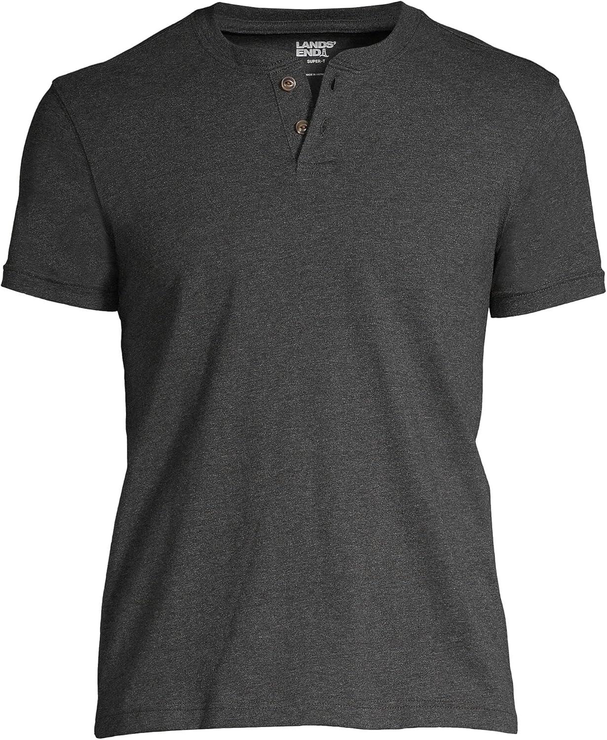Lands’ End Men’s Short Sleeve Super-T Henley(Gray Heather)