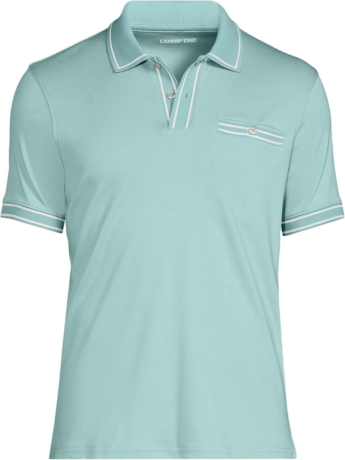 Lands’ End Men’s Short Sleeve Tipped Welt Pocket American-Grown Supima Cotton Polo(Pale Teal)