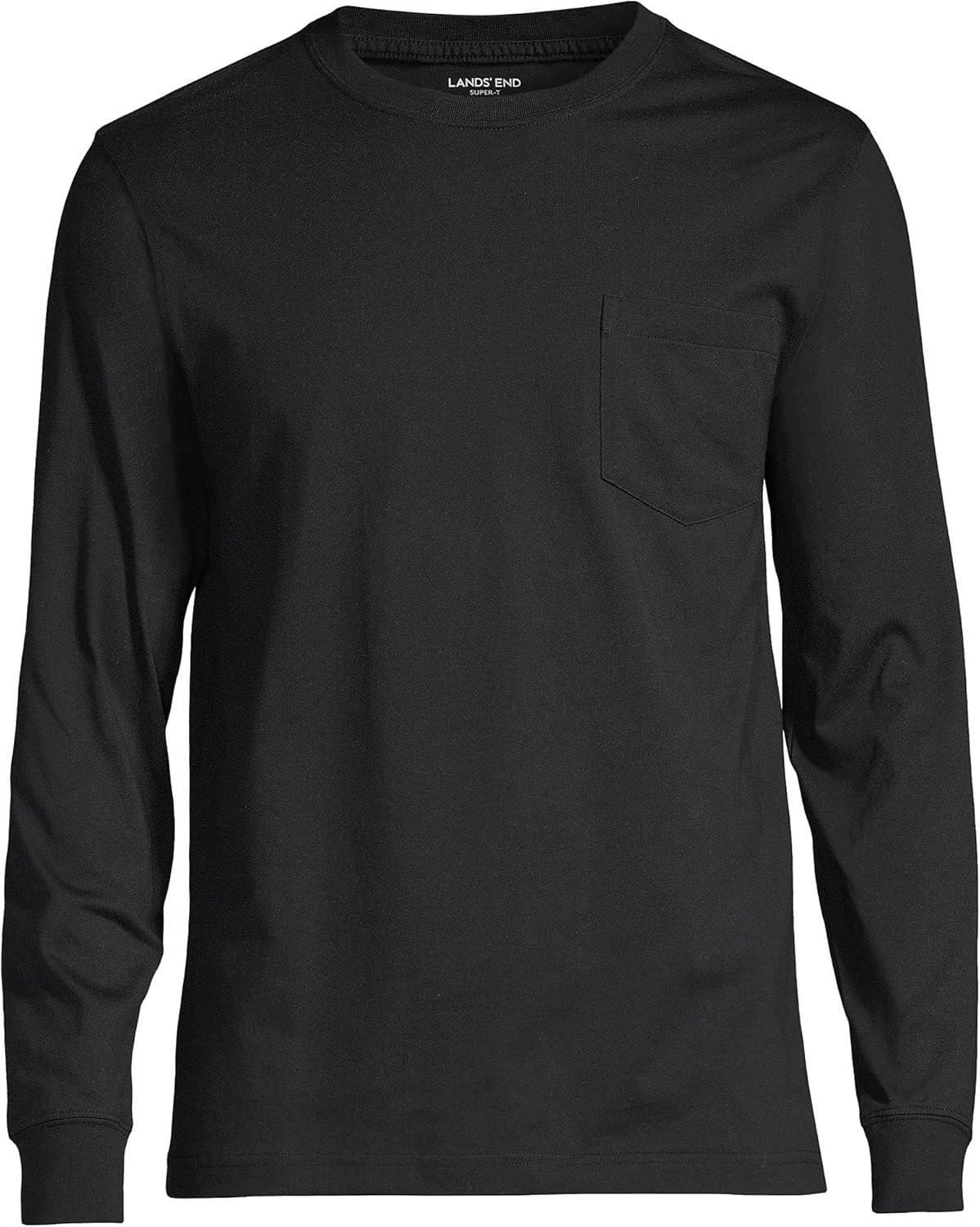 Lands’ End Men’s Super-T Long Sleeve T-Shirt with Pocket(Black)