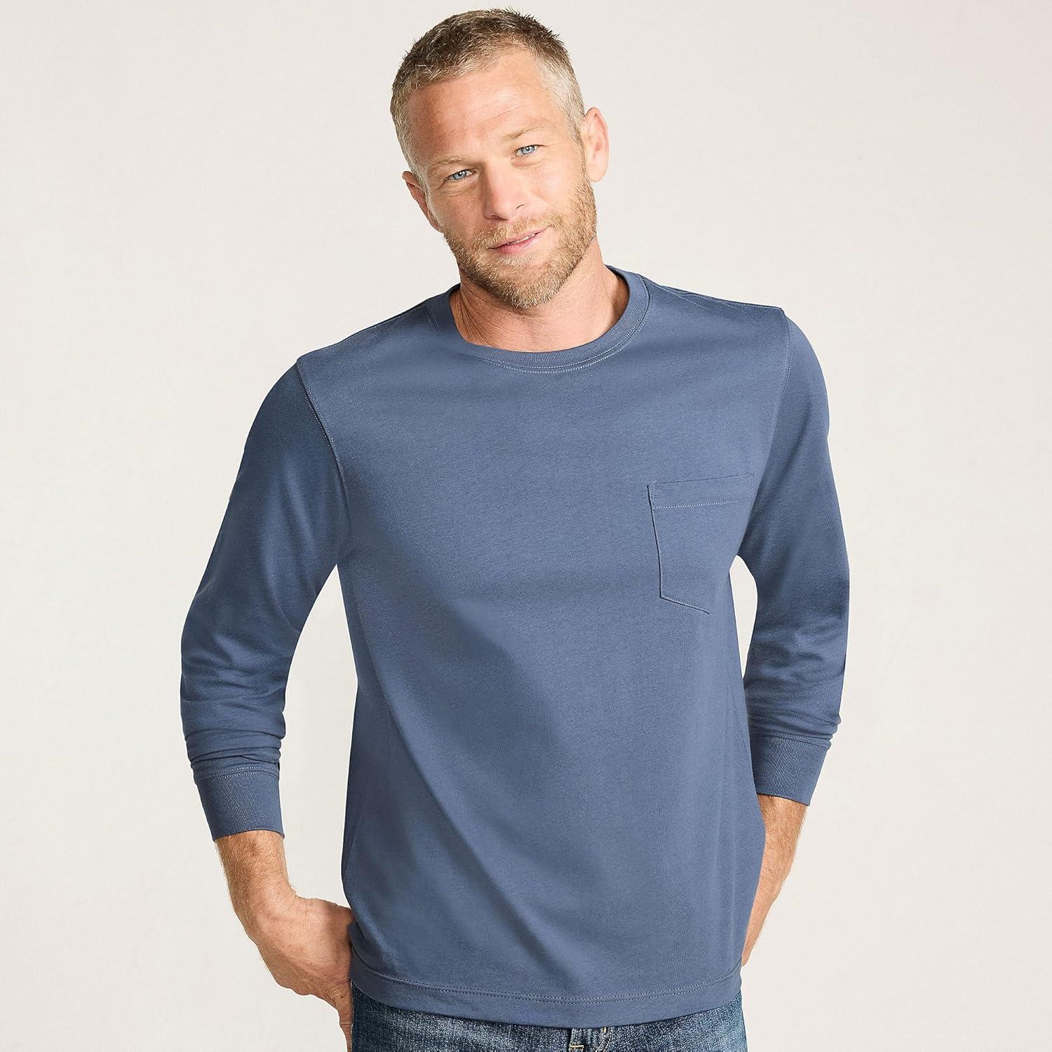 Lands’ End Men’s Super-T Long Sleeve T-Shirt with Pocket(Nightfall Blue)