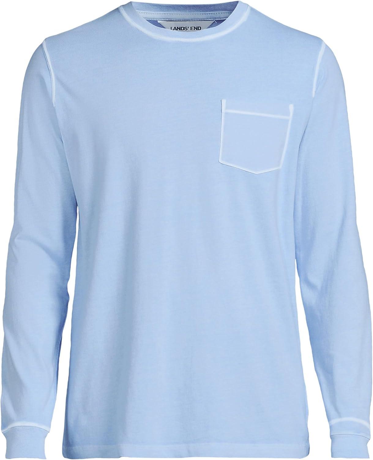 Lands’ End Men’s Super-T Long Sleeve T-Shirt with Pocket(Powder Blue Garment Dye)