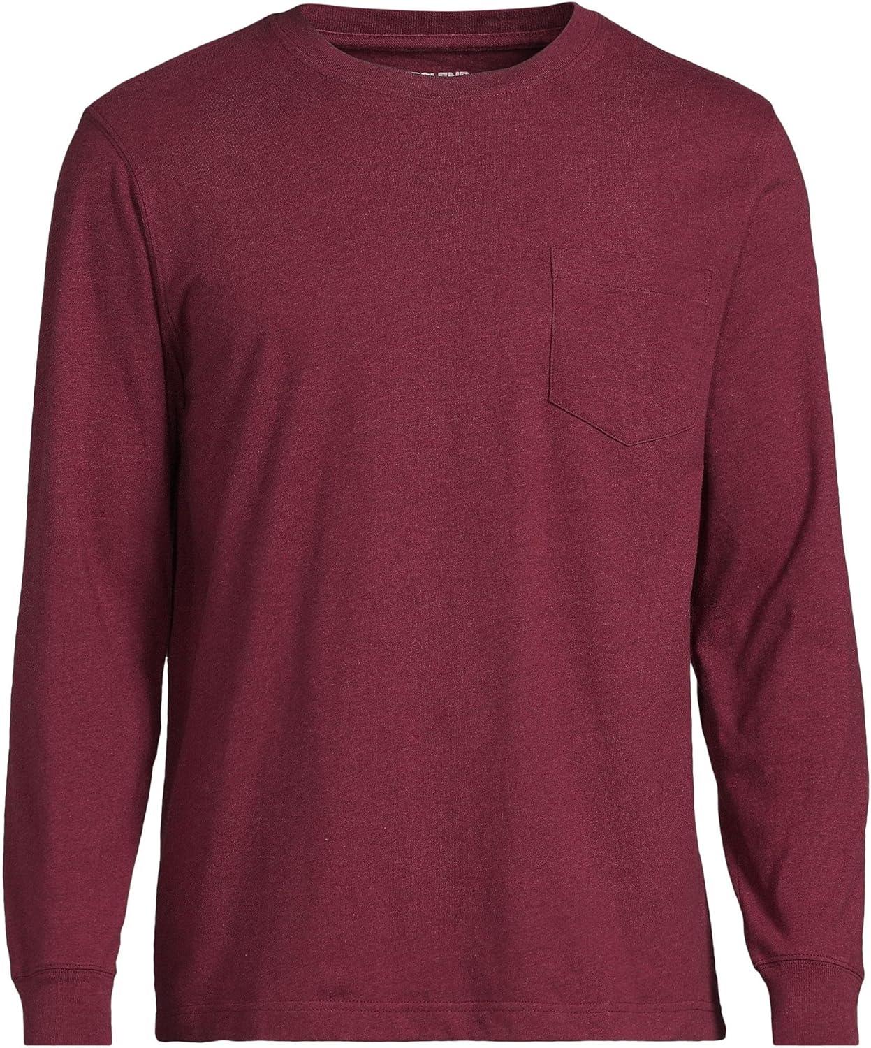 Lands’ End Men’s Super-T Long Sleeve T-Shirt with Pocket(Rich Burgundy Heather)