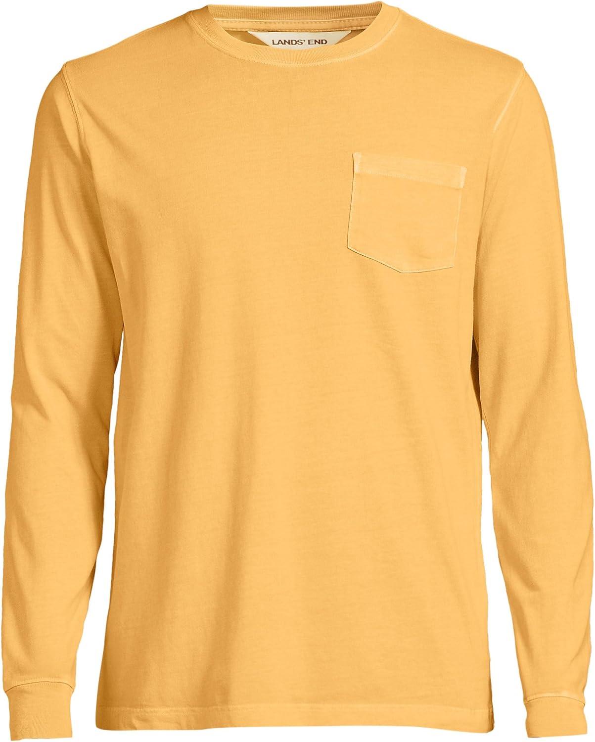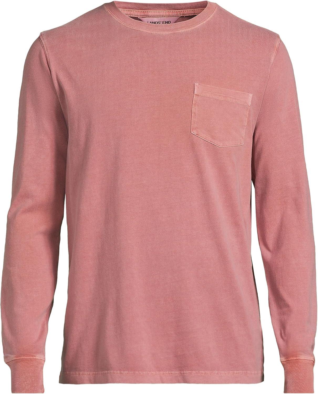 Lands’ End Men’s Super-T Long Sleeve T-Shirt with Pocket(Washed Mango Garment Dye)