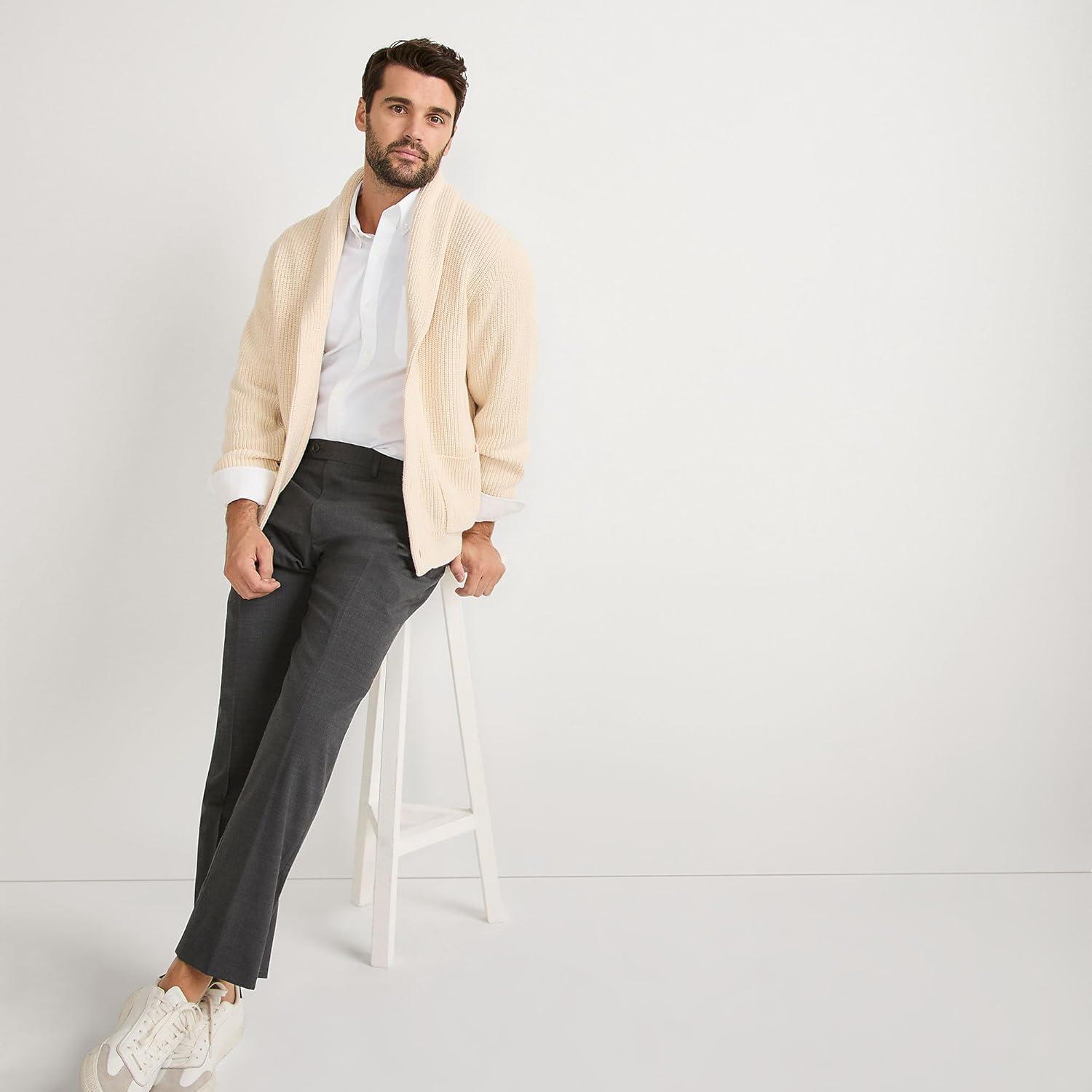 Lands’ End Men’s Fine Gauge Cotton Cardigan(Charcoal Heather)