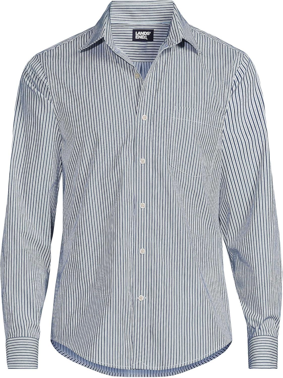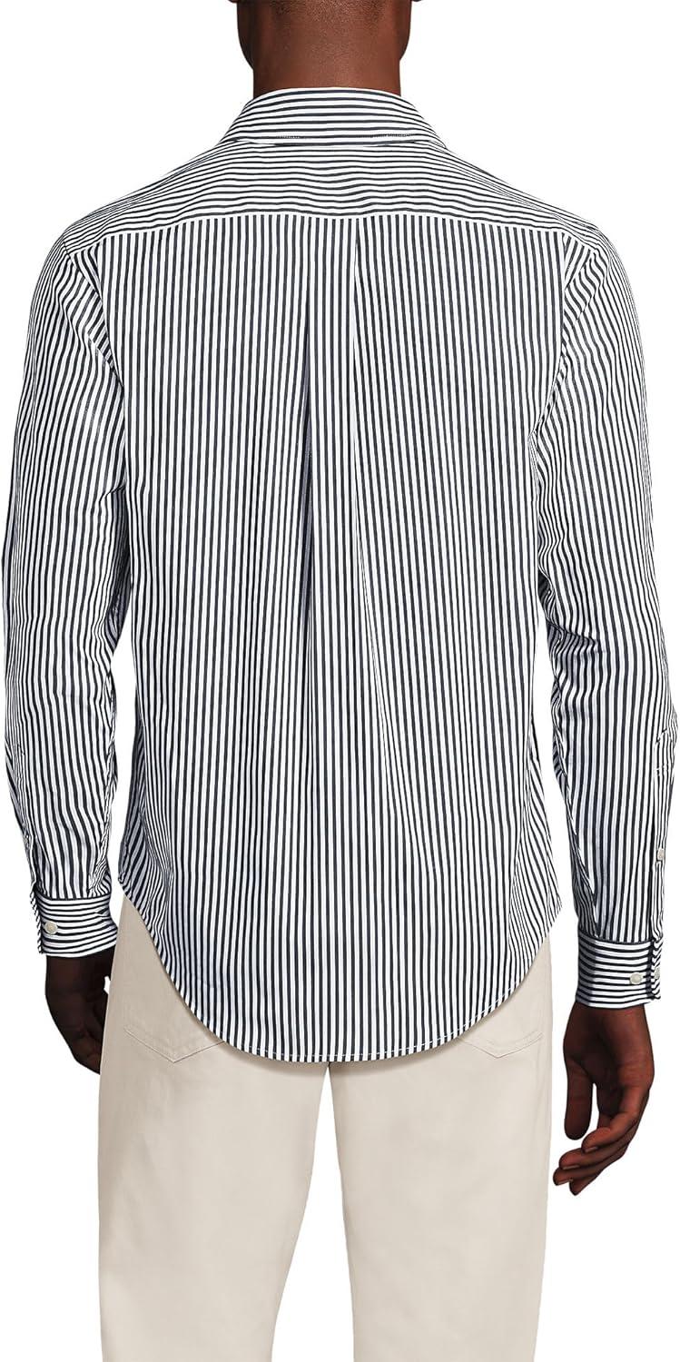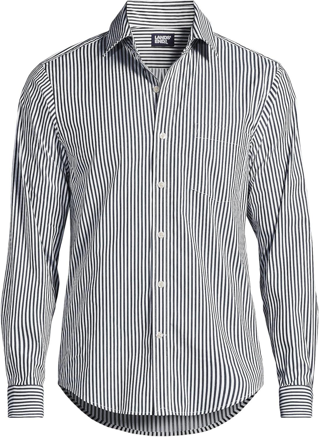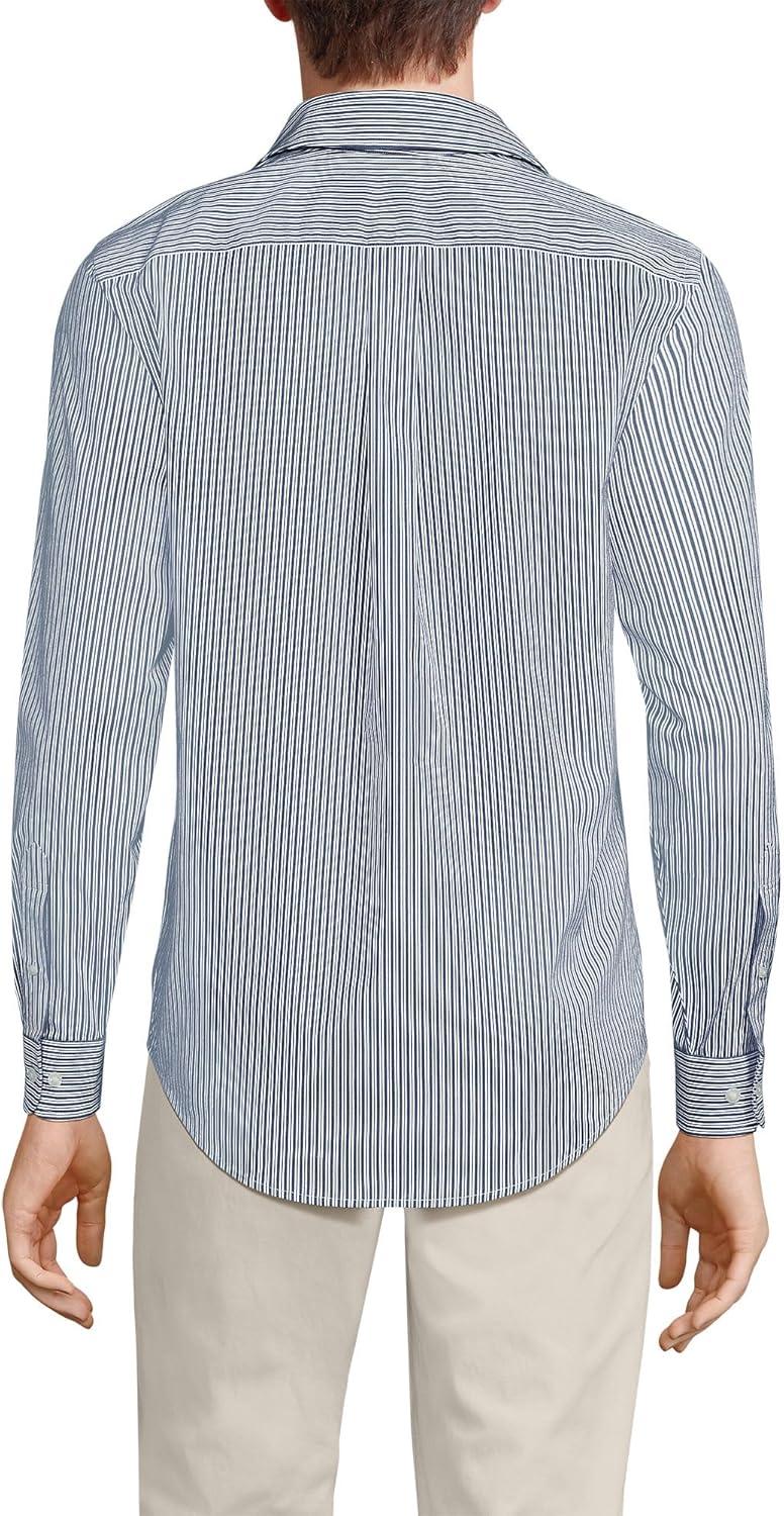 Lands’ End Men’s Traditional Fit Long Sleeve Travel Kit Shirt(Radiant Navy Stripe)