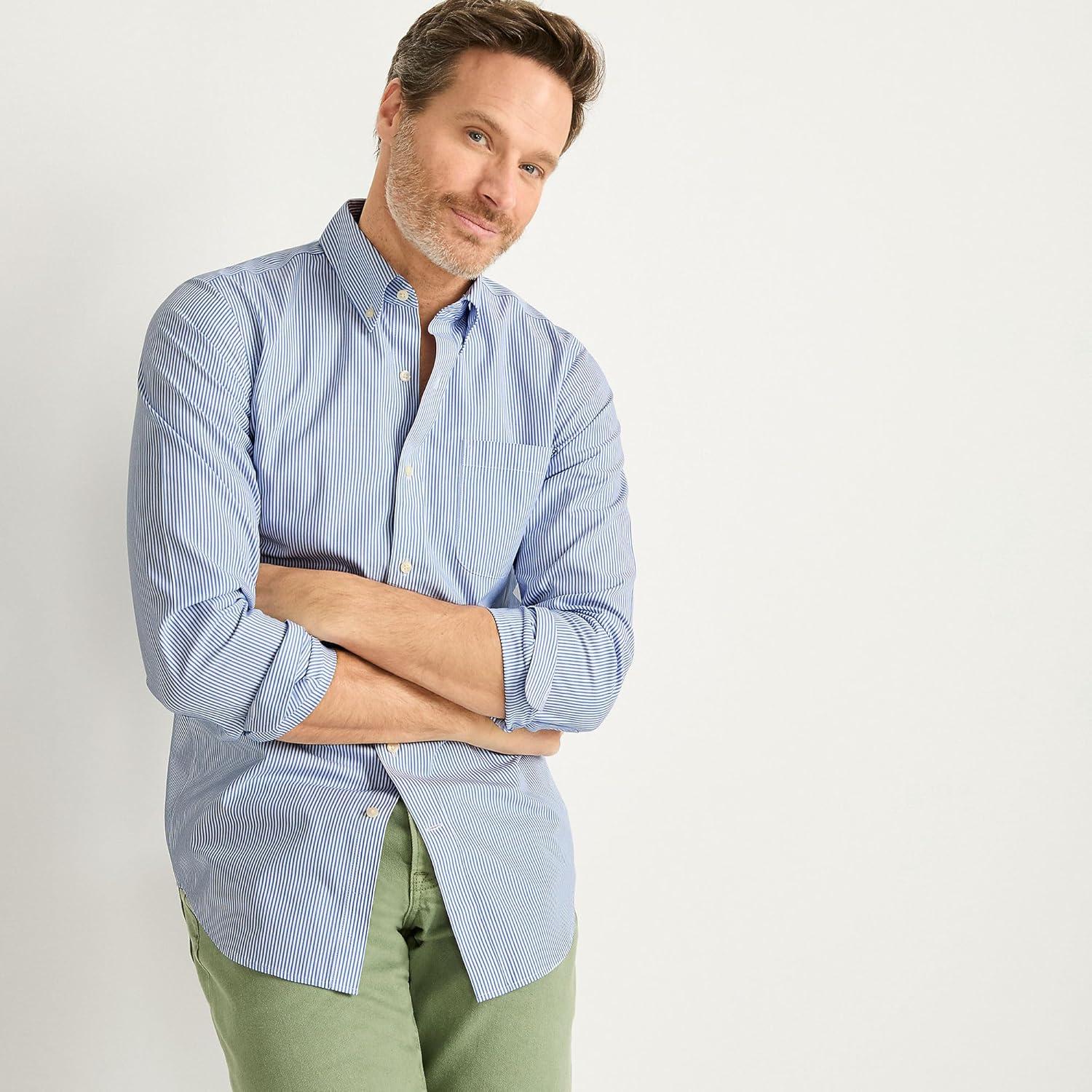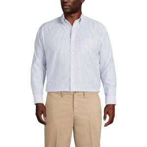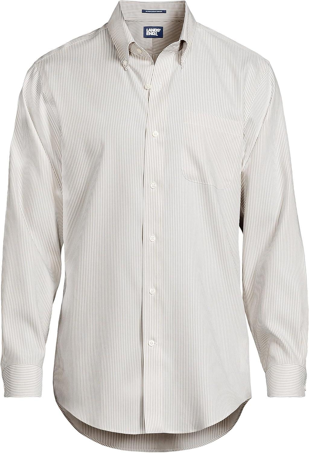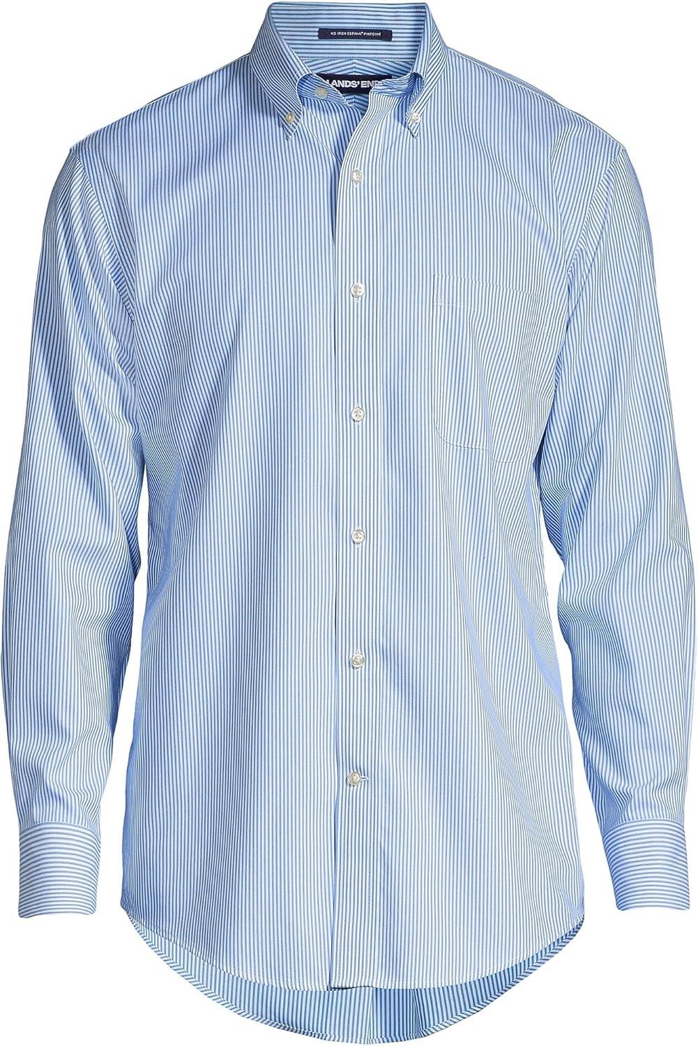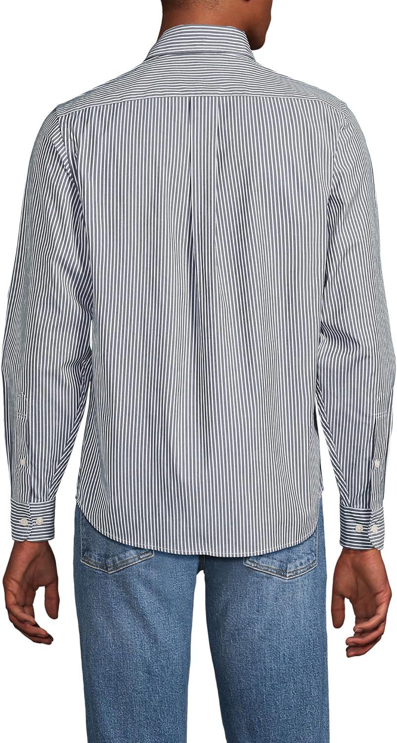 Lands’ End Men’s Traditional Fit Long Sleeve Travel Kit Shirt(Radiant Navy Stripe)