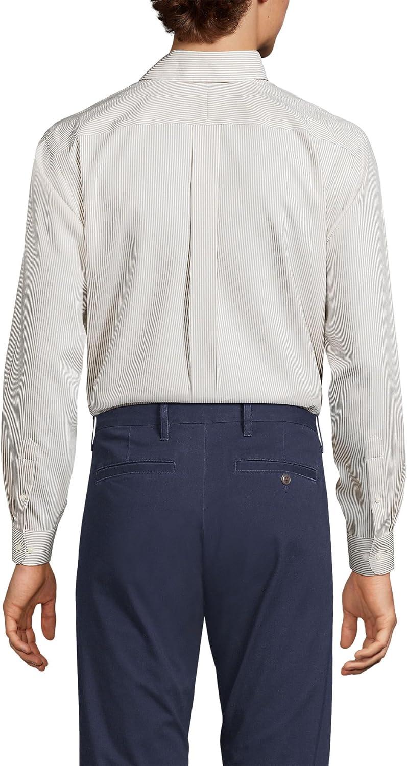 Lands’ End Men’s Tailored Fit No Iron Solid American-Grown Supima Cotton Pinpoint Buttondown Collar Dress Shirt(Khaki Narrow Stripes)