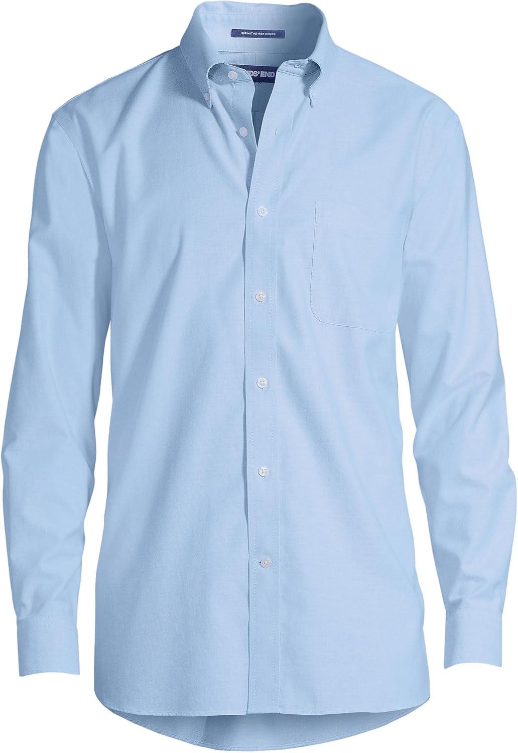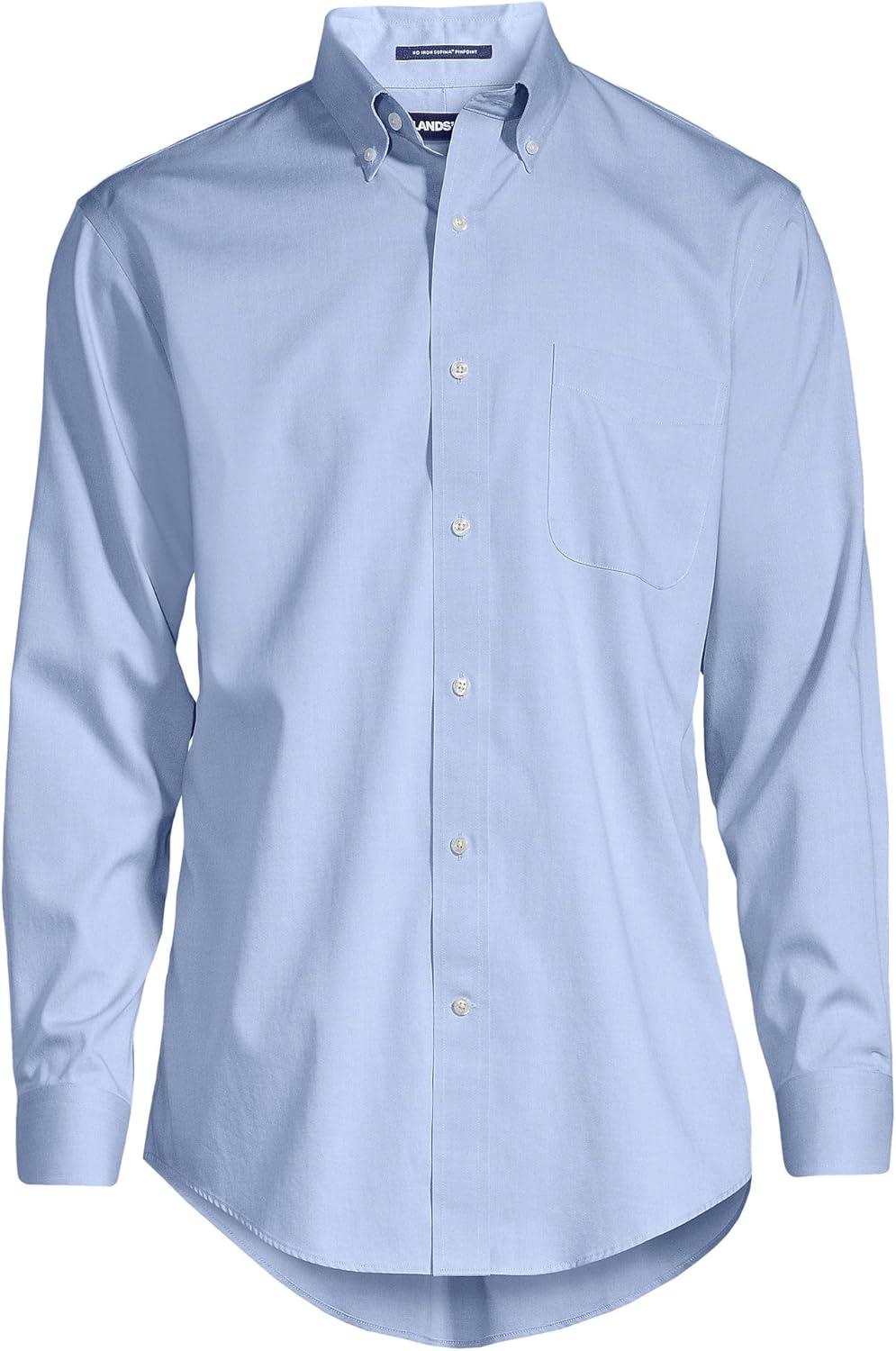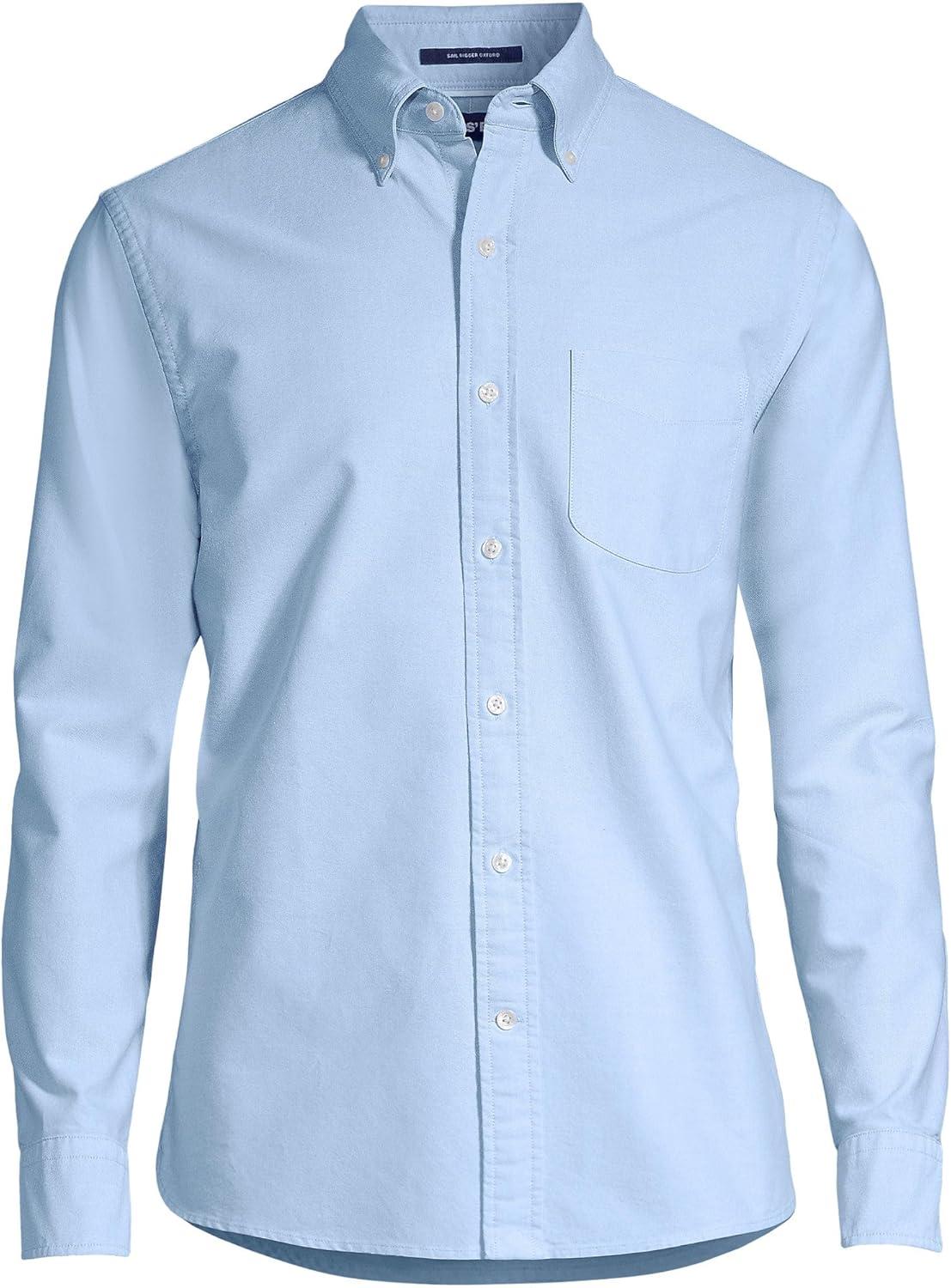 Lands’ End Men’s Traditional Fit Solid No Iron American-Grown Supima Oxford Dress Shirt(Blue)