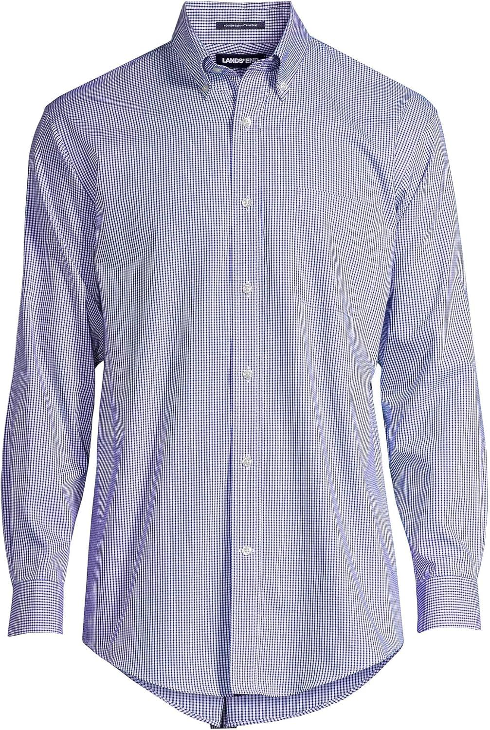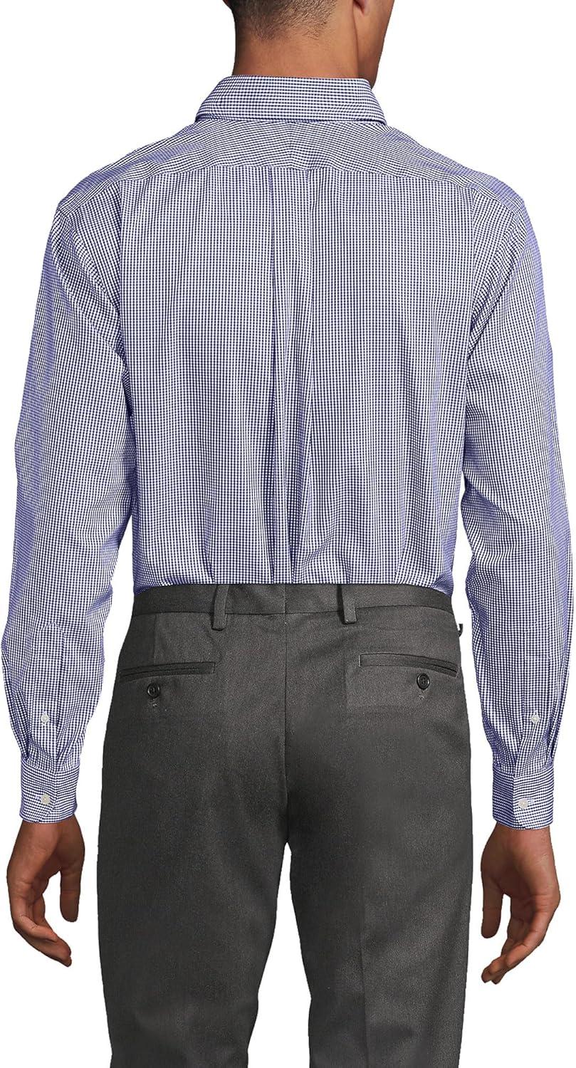 Lands’ End Men’s Traditional Fit Solid No Iron American-Grown Supima Pinpoint Buttondown Collar Dress Shirt(Rich Sapphire Check)