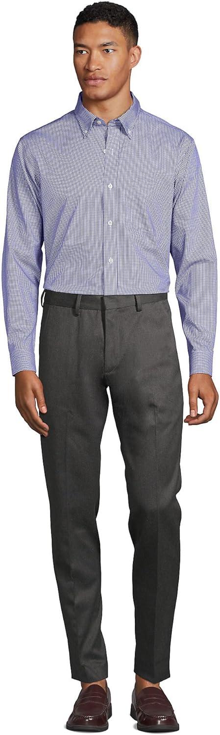 Lands’ End Men’s Tailored Fit No Iron Solid American-Grown Supima Cotton Pinpoint Buttondown Collar Dress Shirt(Ultimate Gray Check)