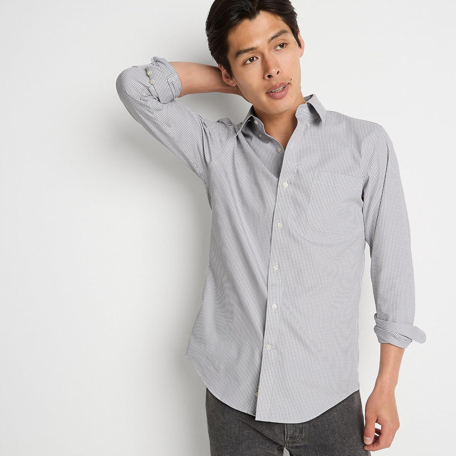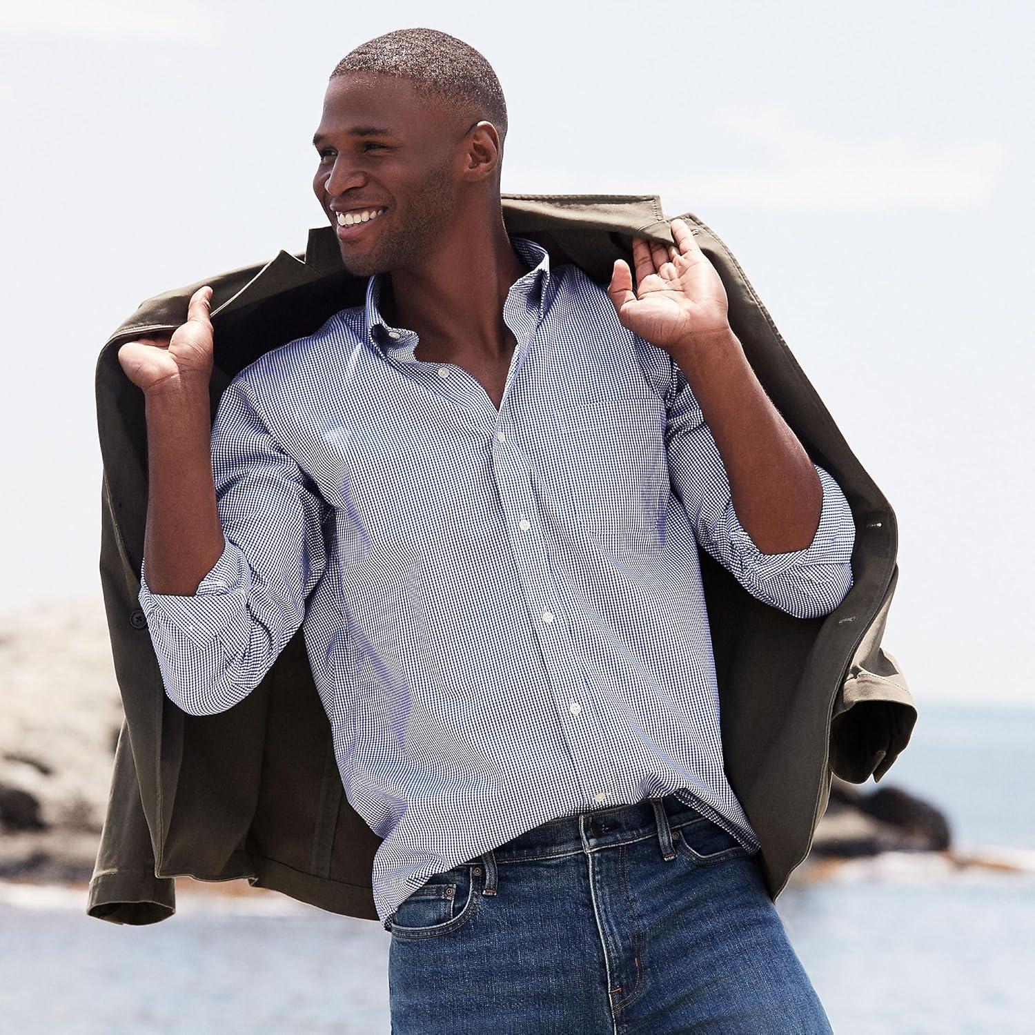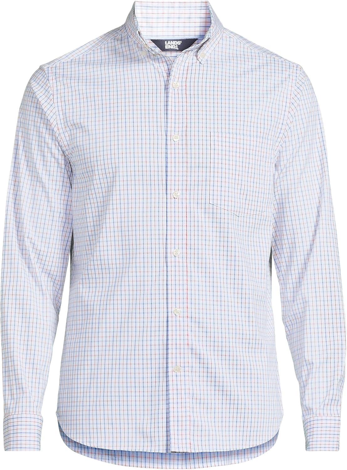 Lands’ End Men’s Long Sleeve Tailored Fit Travel Kit Shirt(Tourmaline Gingham)