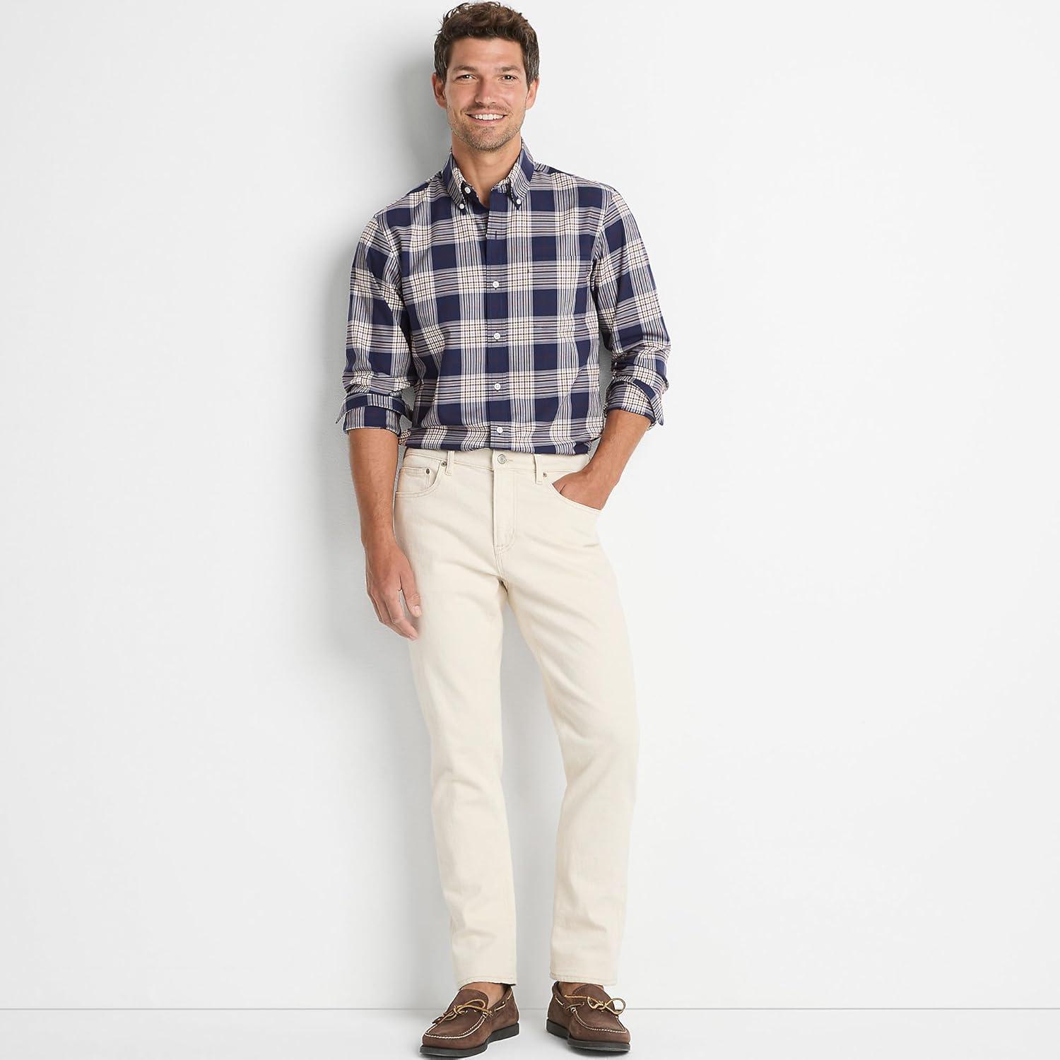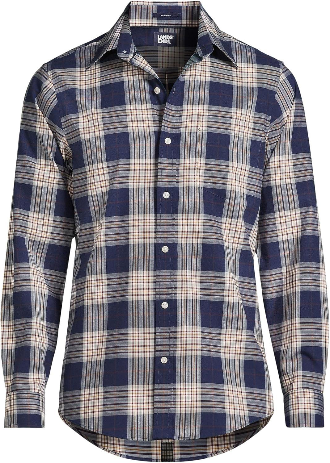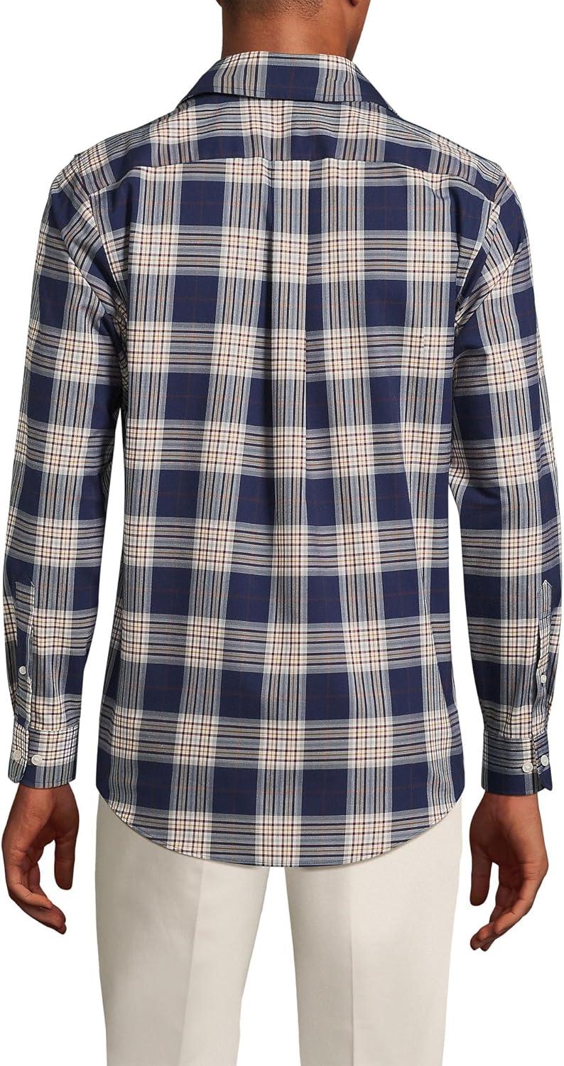 Lands’ End Men’s Long Sleeve Tailored Fit Travel Kit Shirt(Mariner Blue/Pale Almond Plaid)