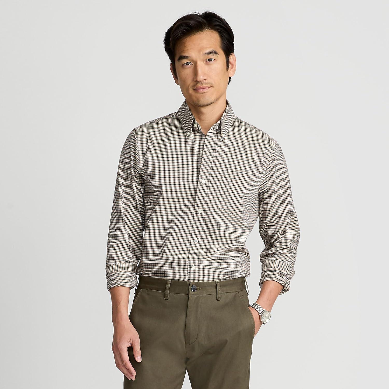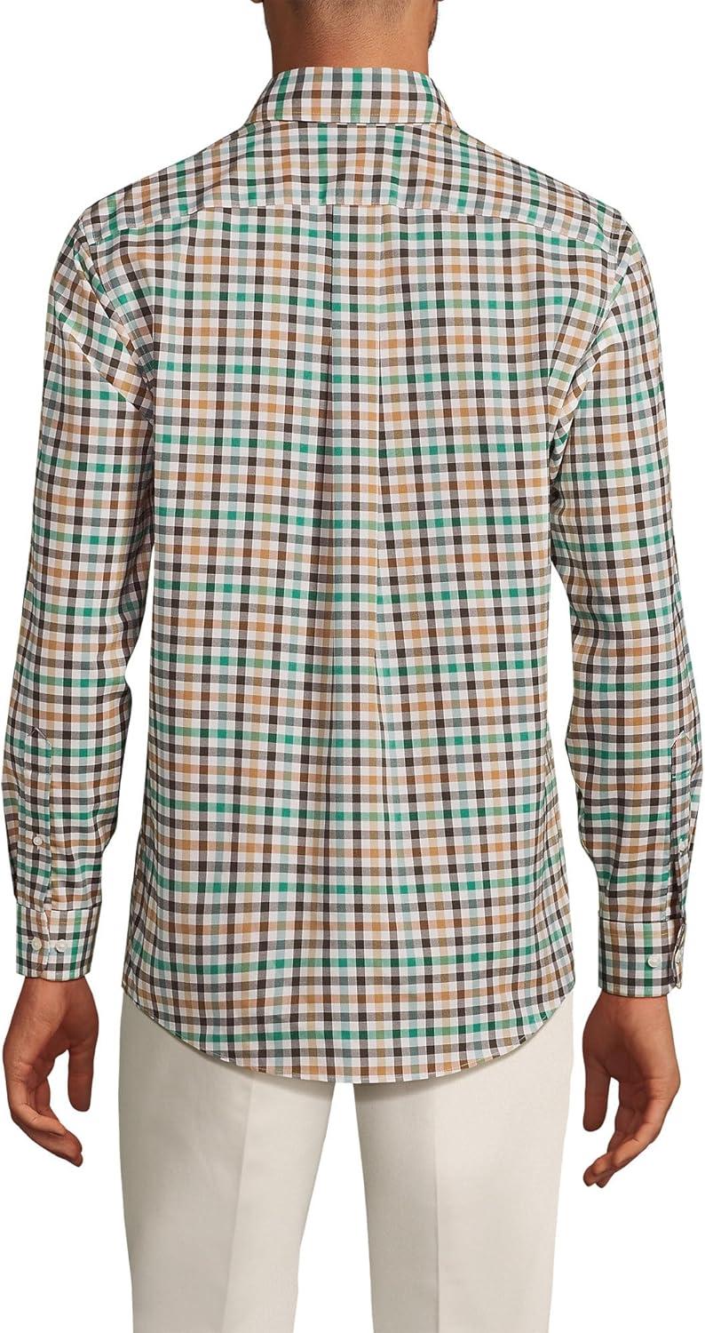 Lands’ End Men’s Tailored Fit No Iron Twill Long Sleeve Shirt(River Stone Green/Gold Plaid)