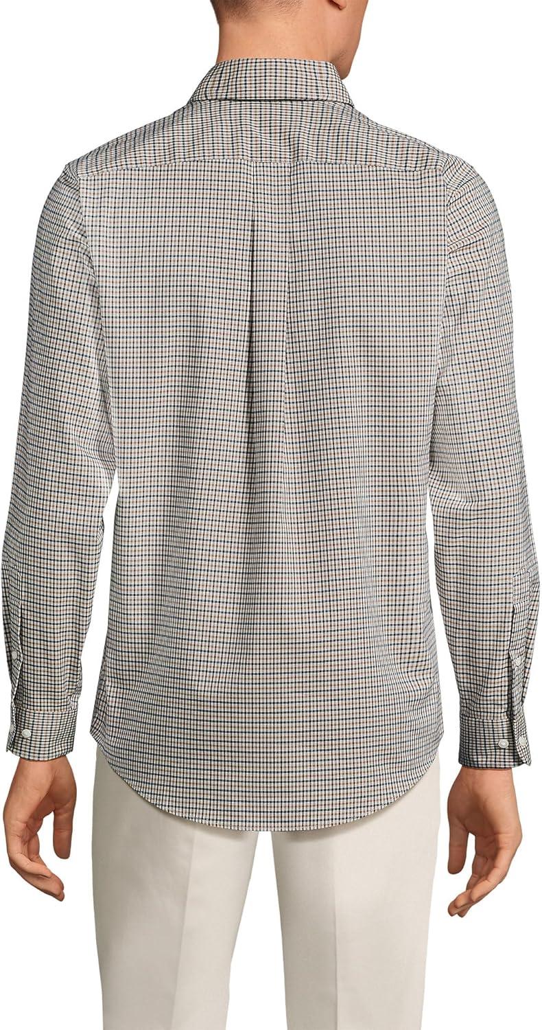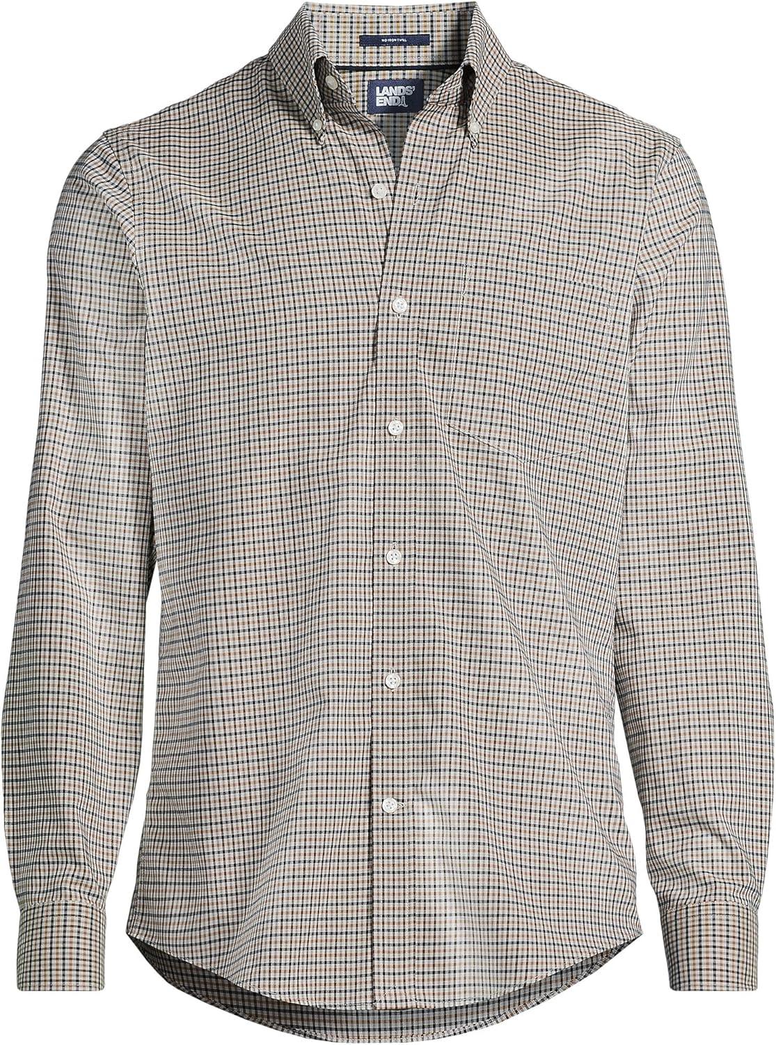 Lands’ End Men’s Tailored Fit No Iron Twill Long Sleeve Shirt(Light Mushroom Check)