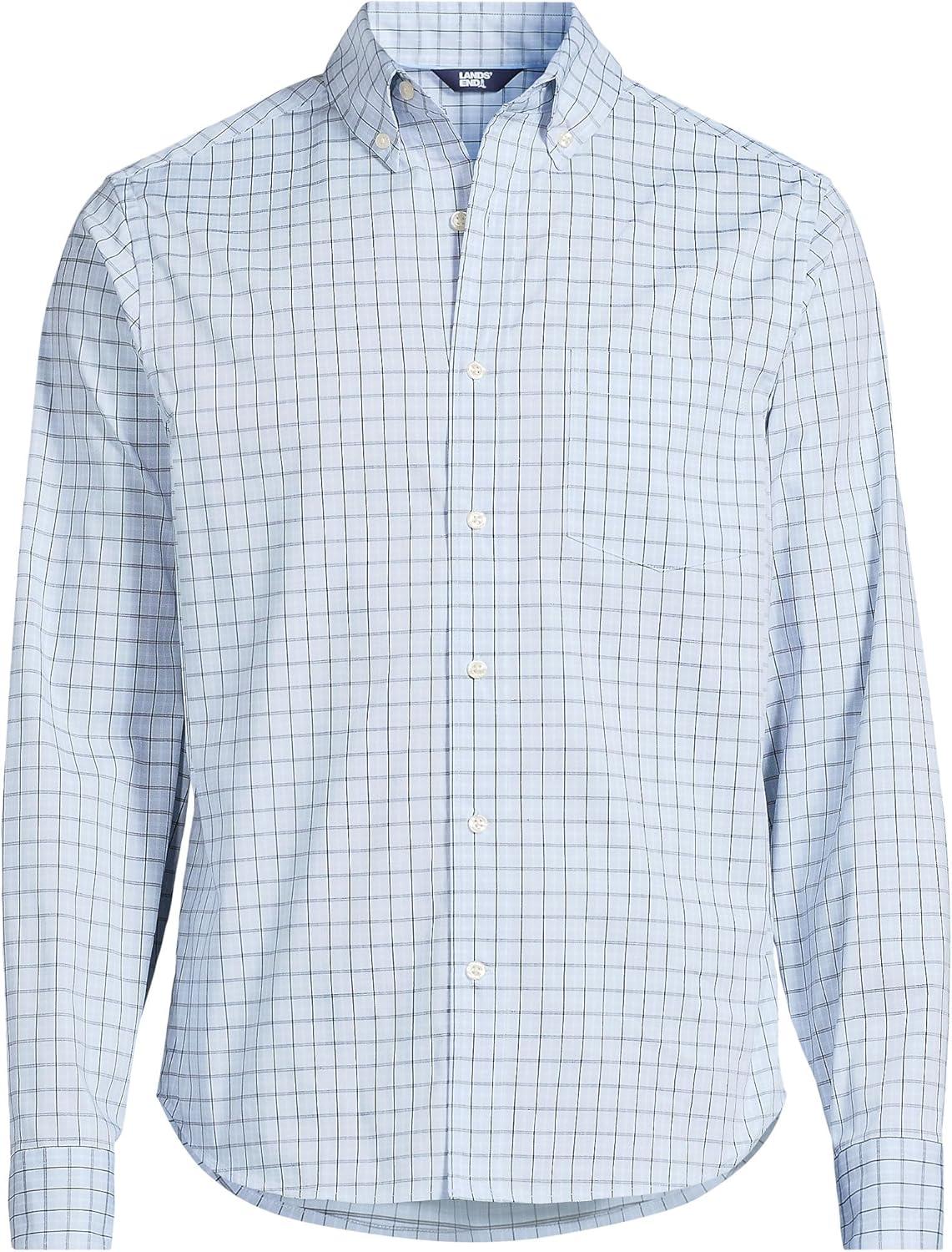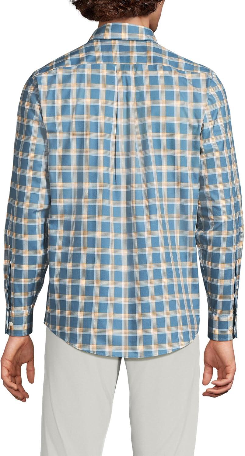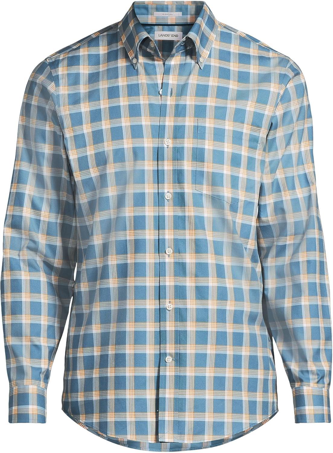Lands’ End Men’s Tailored Fit No Iron Twill Long Sleeve Shirt(Soft Peacock Plaid)