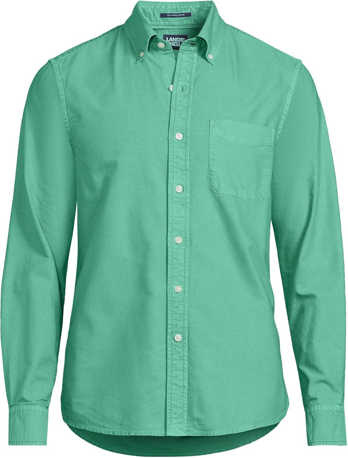 Lands’ End Men’s Traditional Fit Solid No Iron American-Grown Supima Oxford Dress Shirt(Oxford Green)
