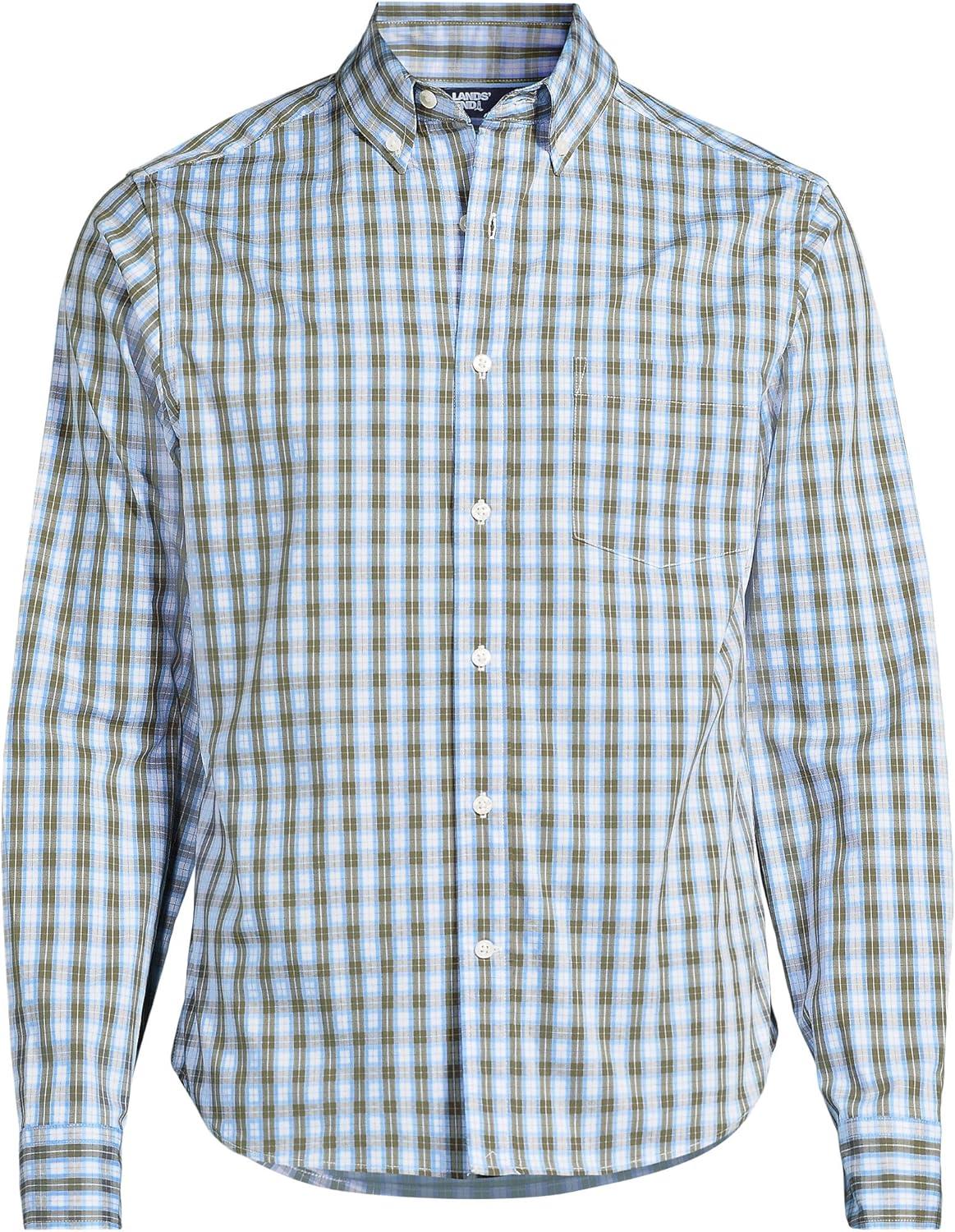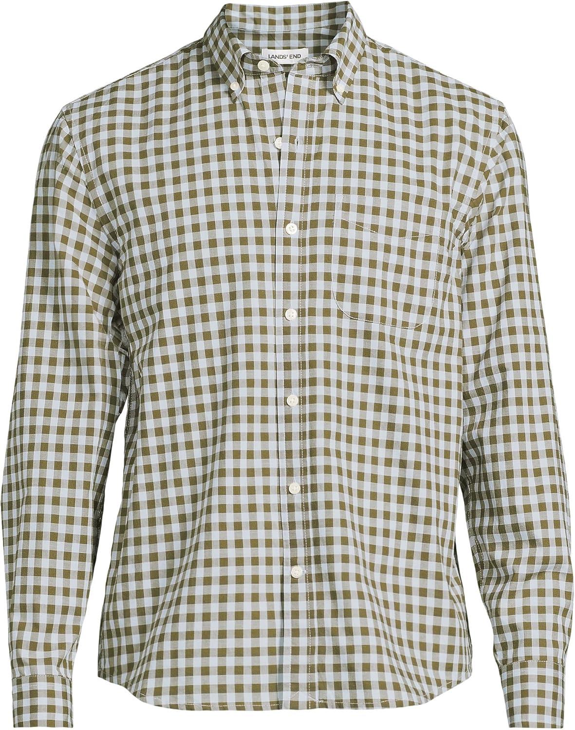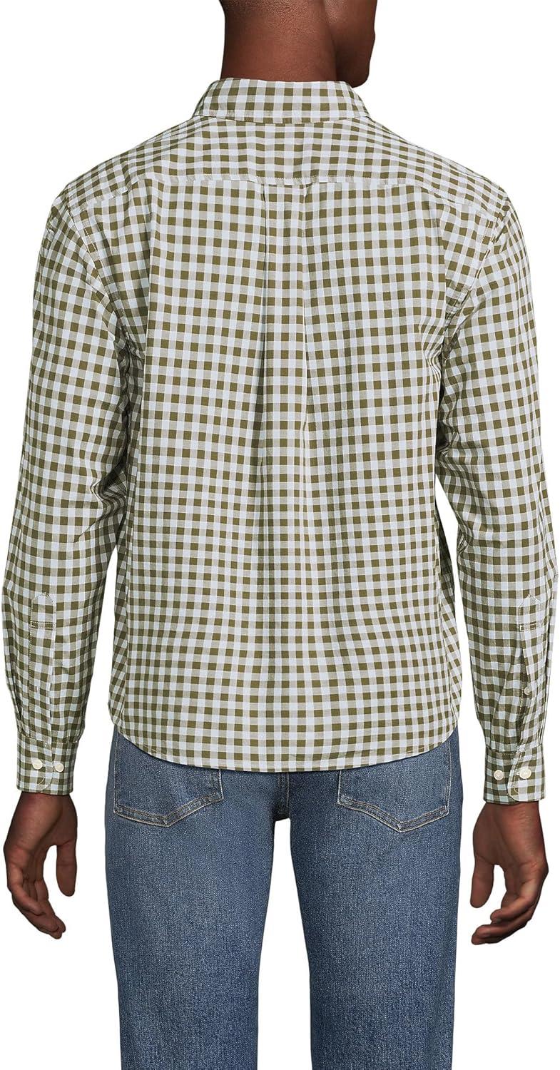 Lands’ End Men’s Traditional Fit Essential Lightweight Poplin Shirt(Olive Drab Gingham)
