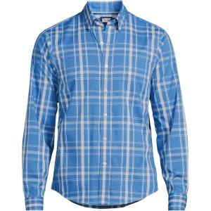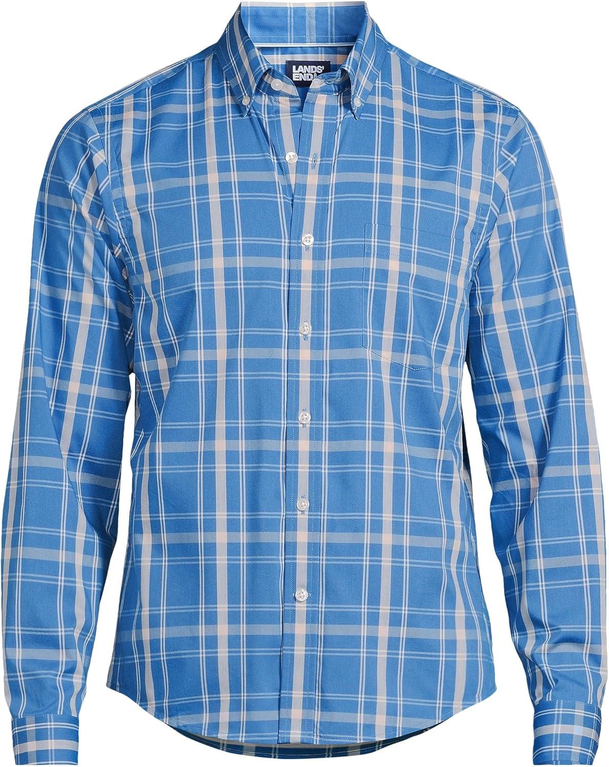 Lands’ End Men’s Long Sleeve Tailored Fit Travel Kit Shirt(Clearlake Blue Plaid)