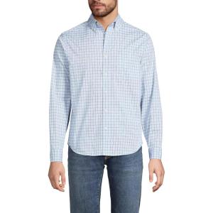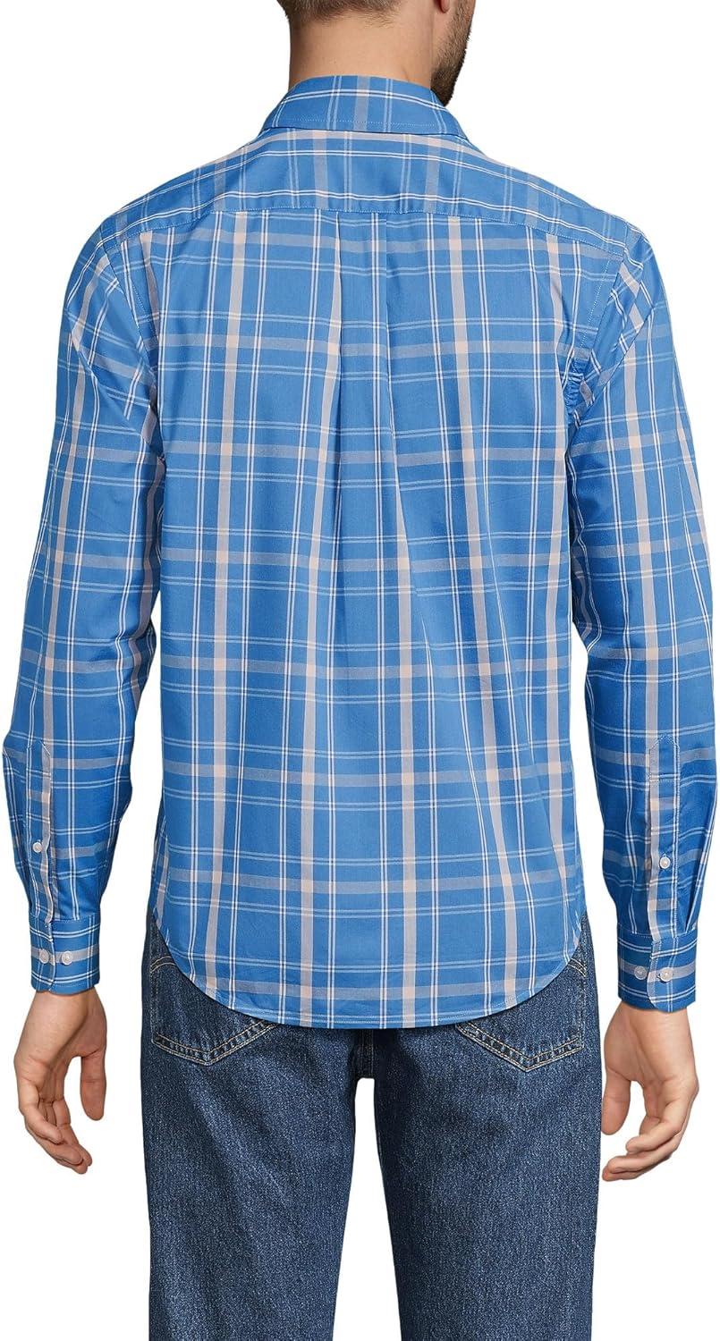 Lands’ End Men’s Traditional Fit Long Sleeve Travel Kit Shirt(Clearlake Blue Plaid)