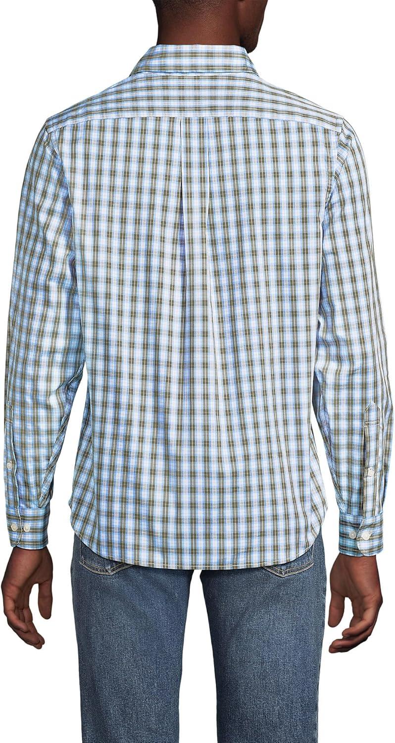 Lands’ End Men’s Long Sleeve Tailored Fit Travel Kit Shirt(Olive Drab/Blue Plaid)