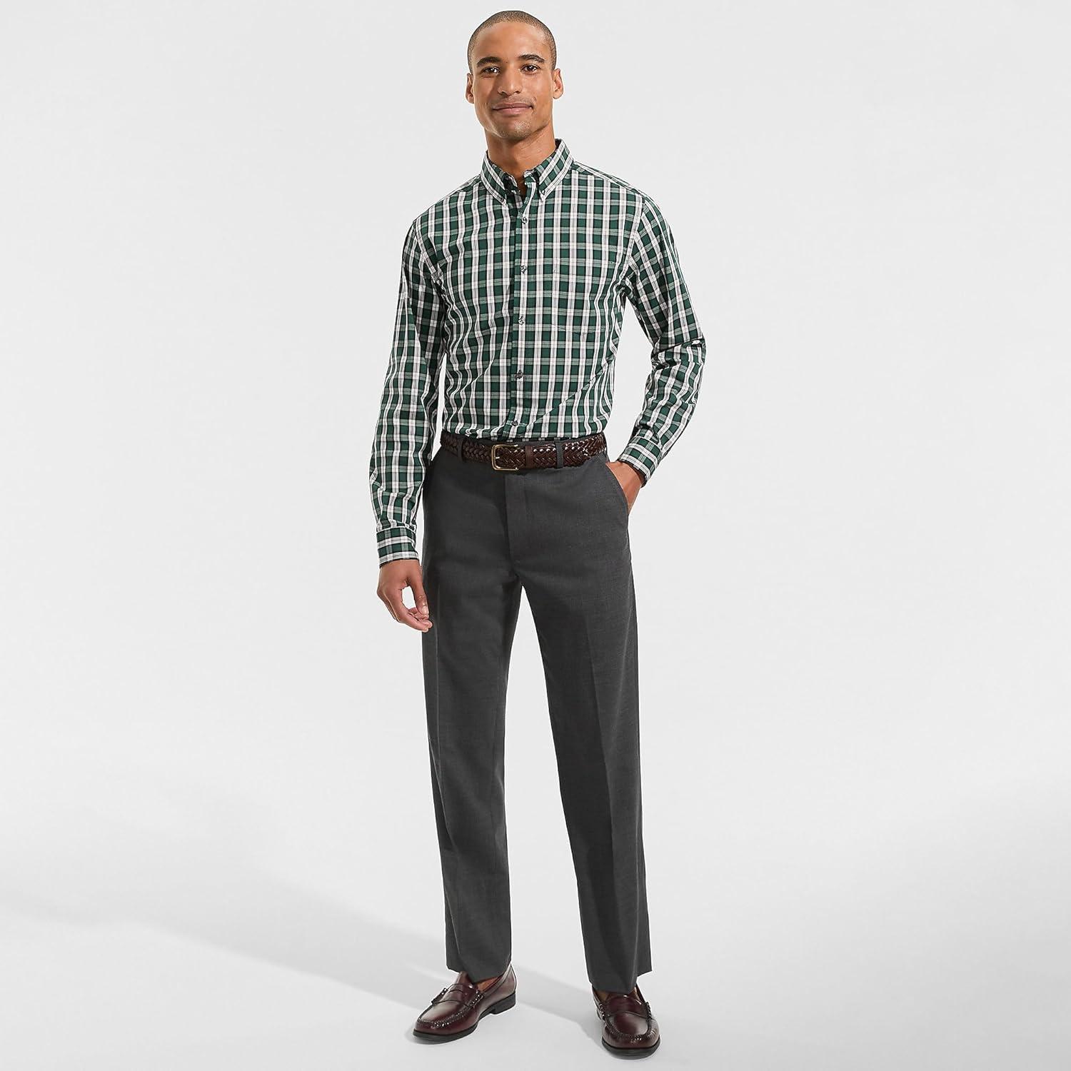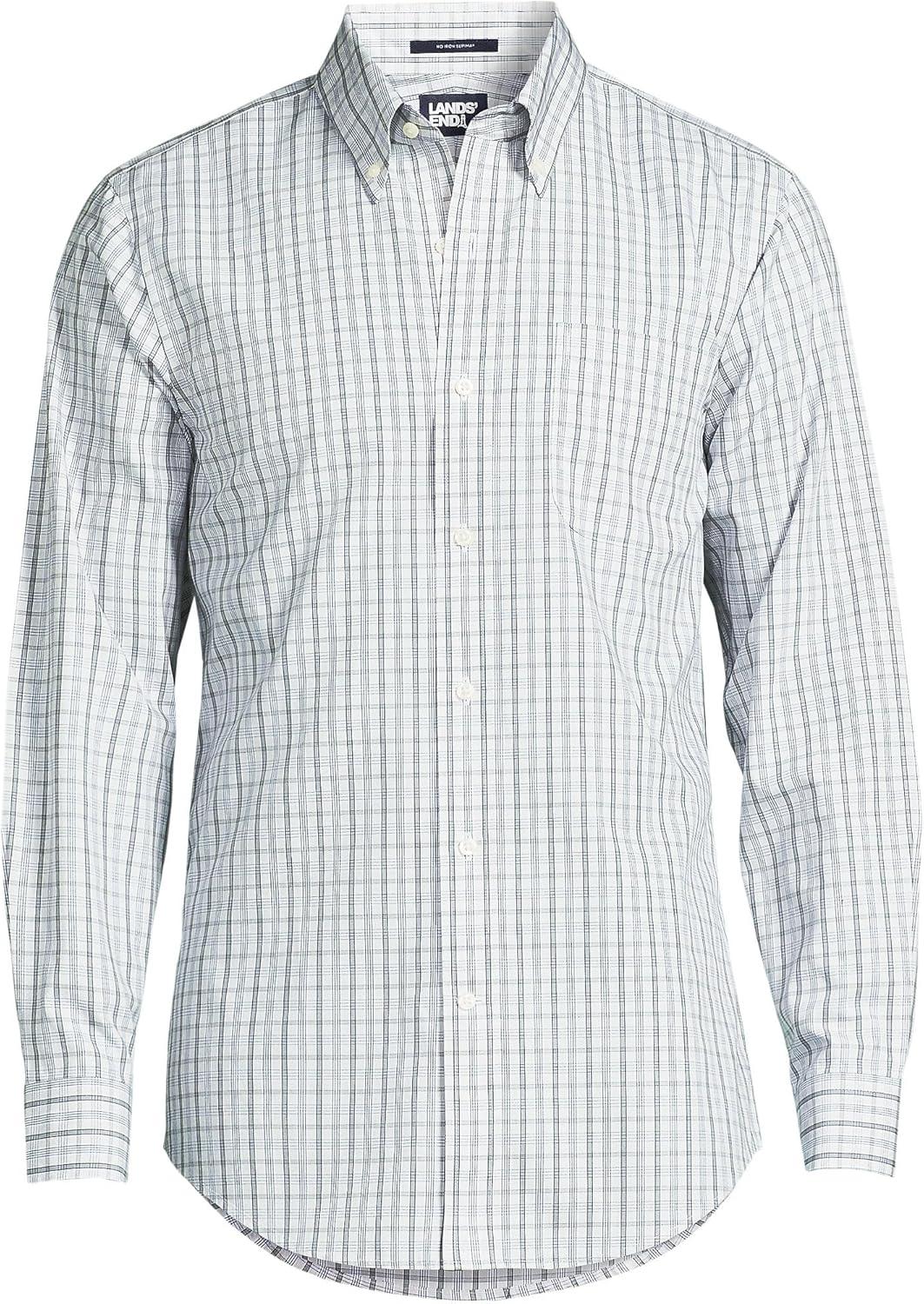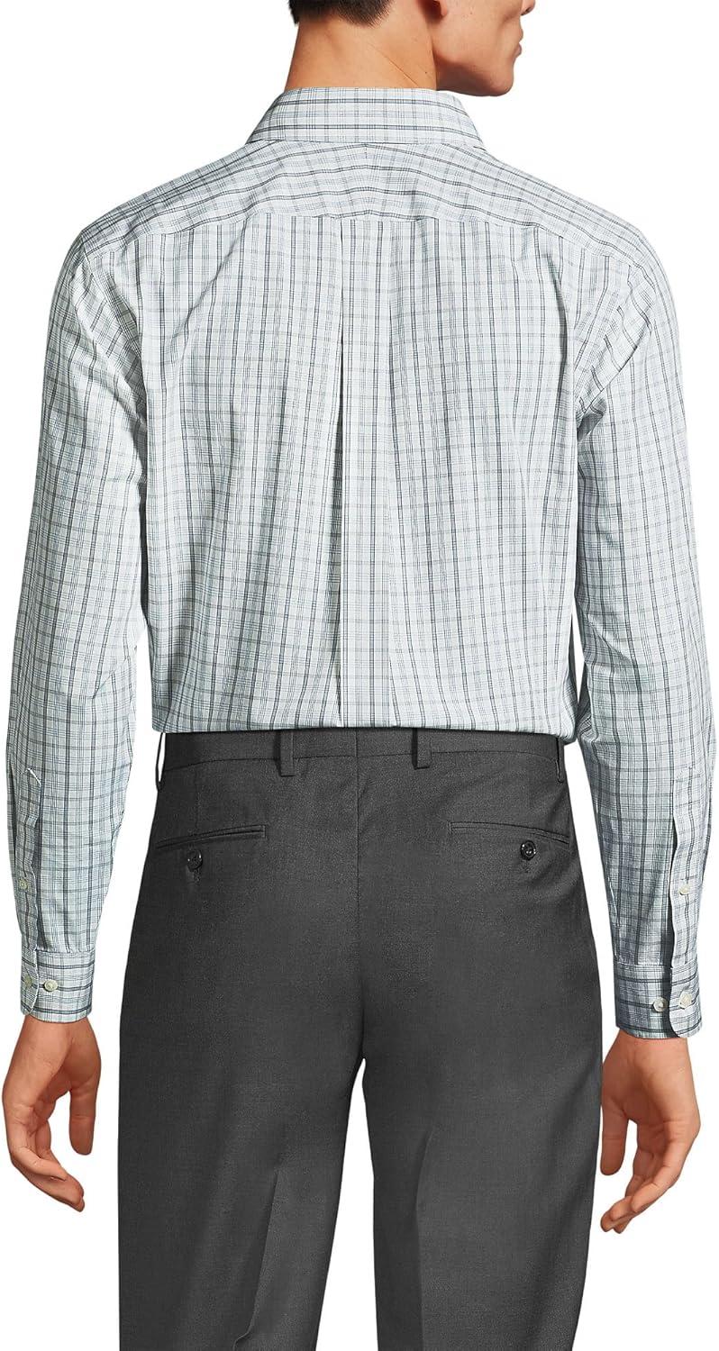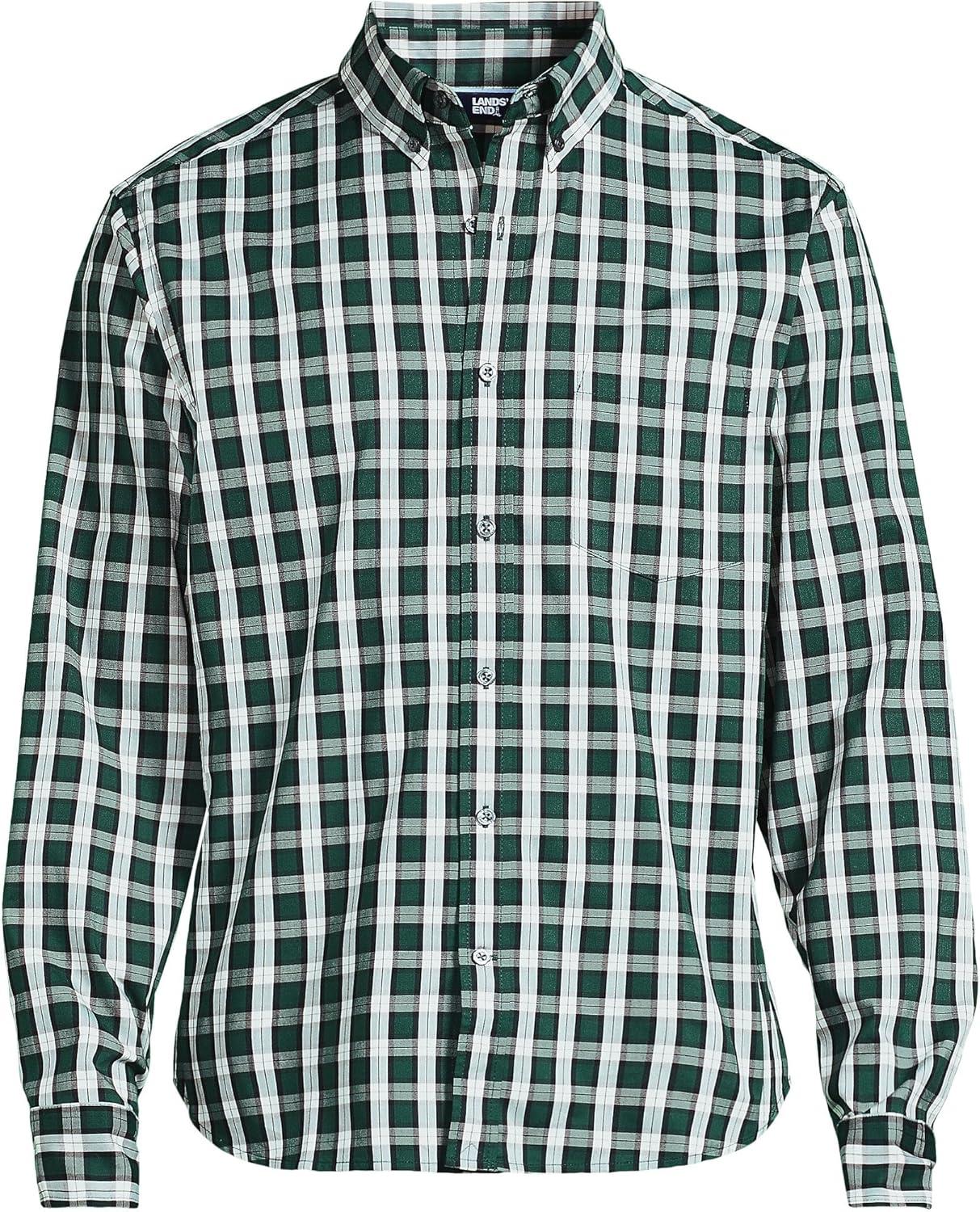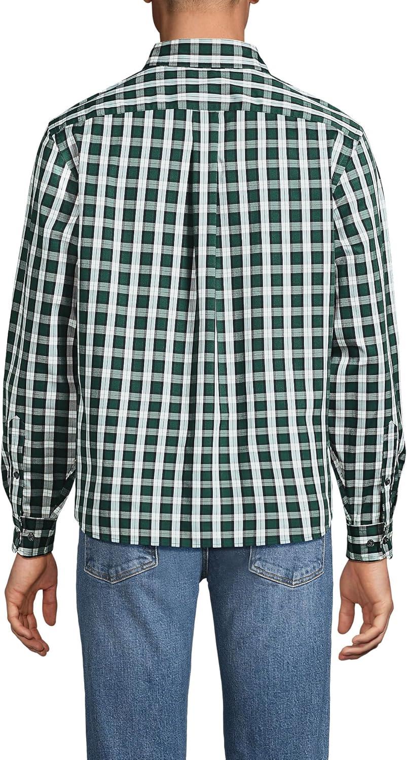 Lands’ End Men’s Tailored Fit No Iron Twill Long Sleeve Shirt(Fresh Evergreen/Green Plaid)