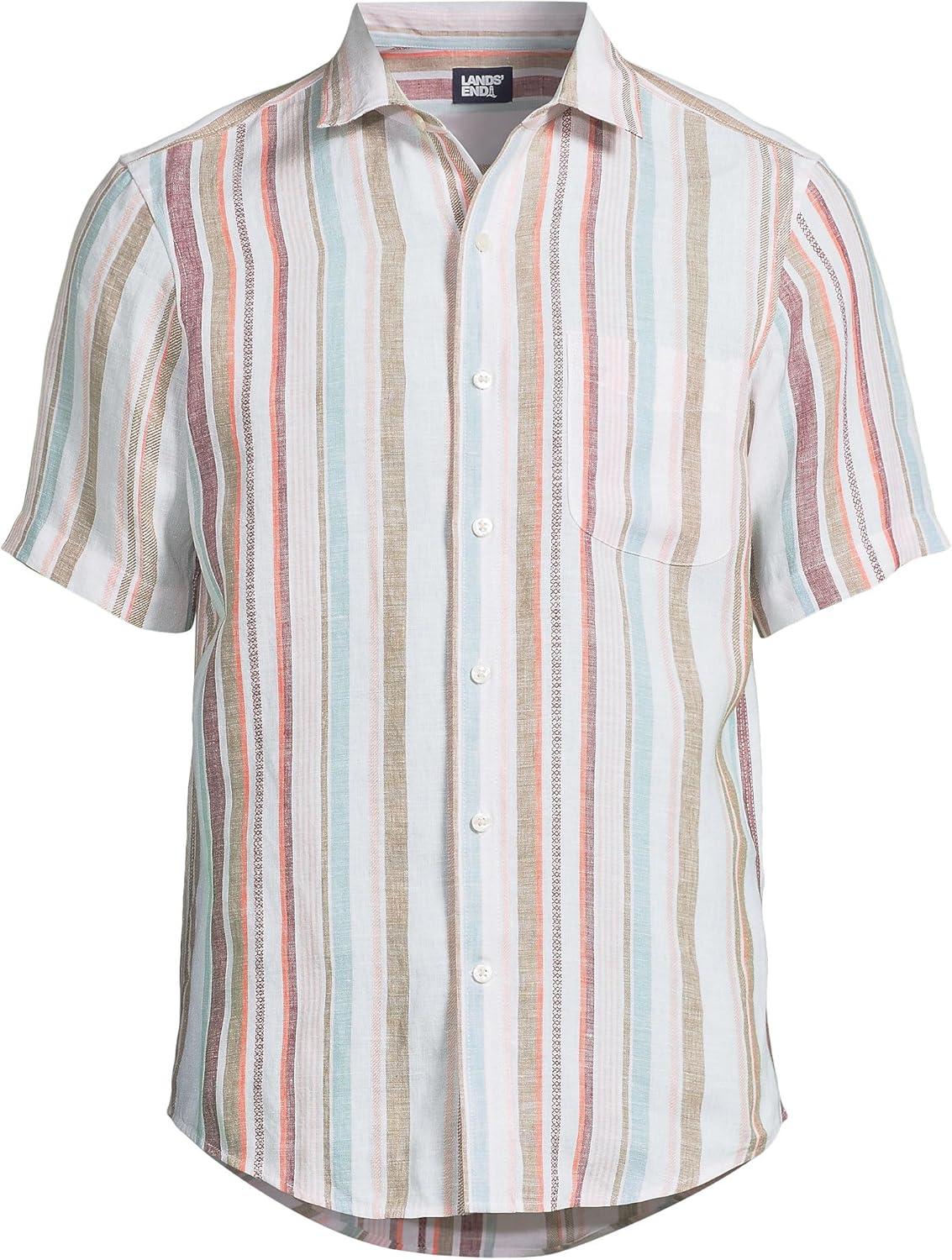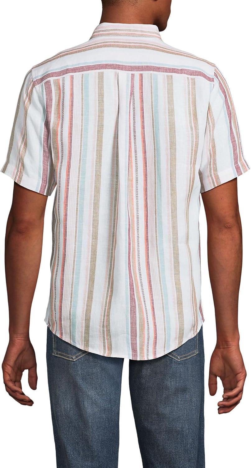 Lands’ End Men’s Traditional Fit Short Sleeve Linen Shirt(Classic Vanilla Multi Stripe)