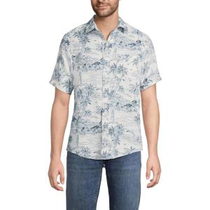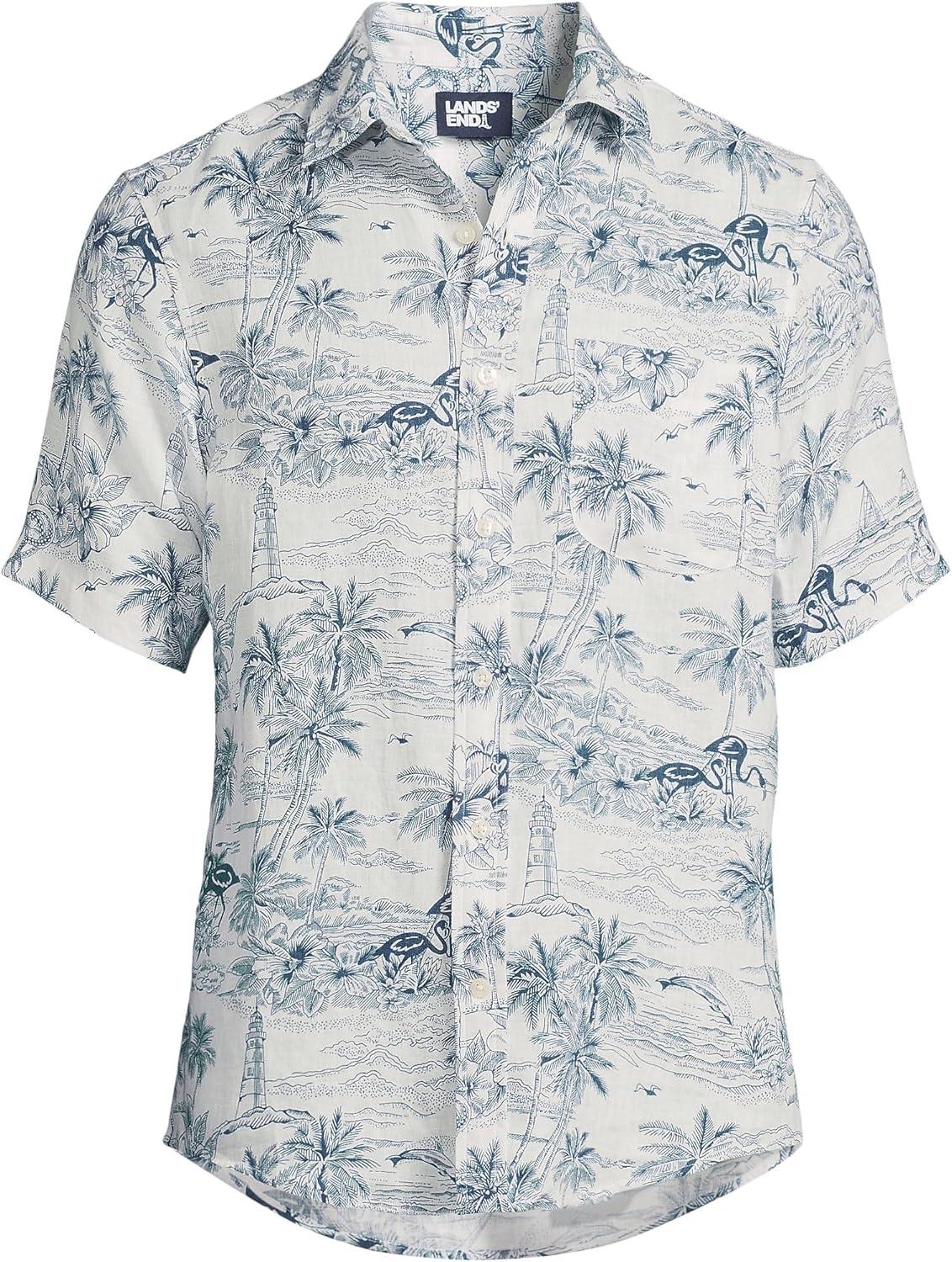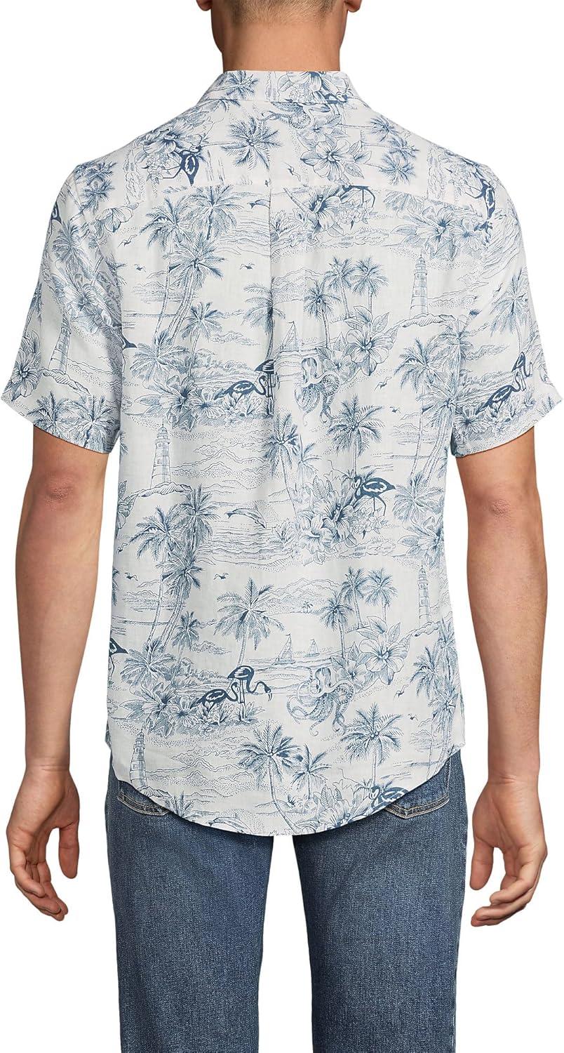 Lands’ End Men’s Traditional Fit Short Sleeve Linen Shirt(Egret White Tropical Scene)