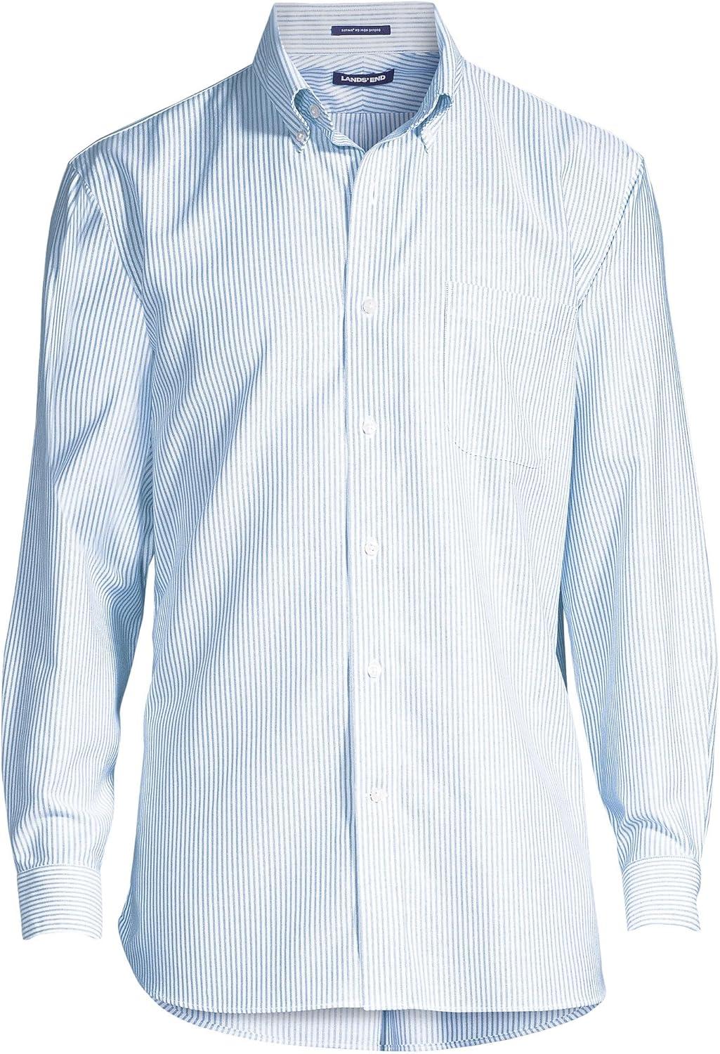 Lands’ End Men’s Traditional Fit Solid No Iron American-Grown Supima Oxford Dress Shirt(Light Blue Sky Classic Stripe)