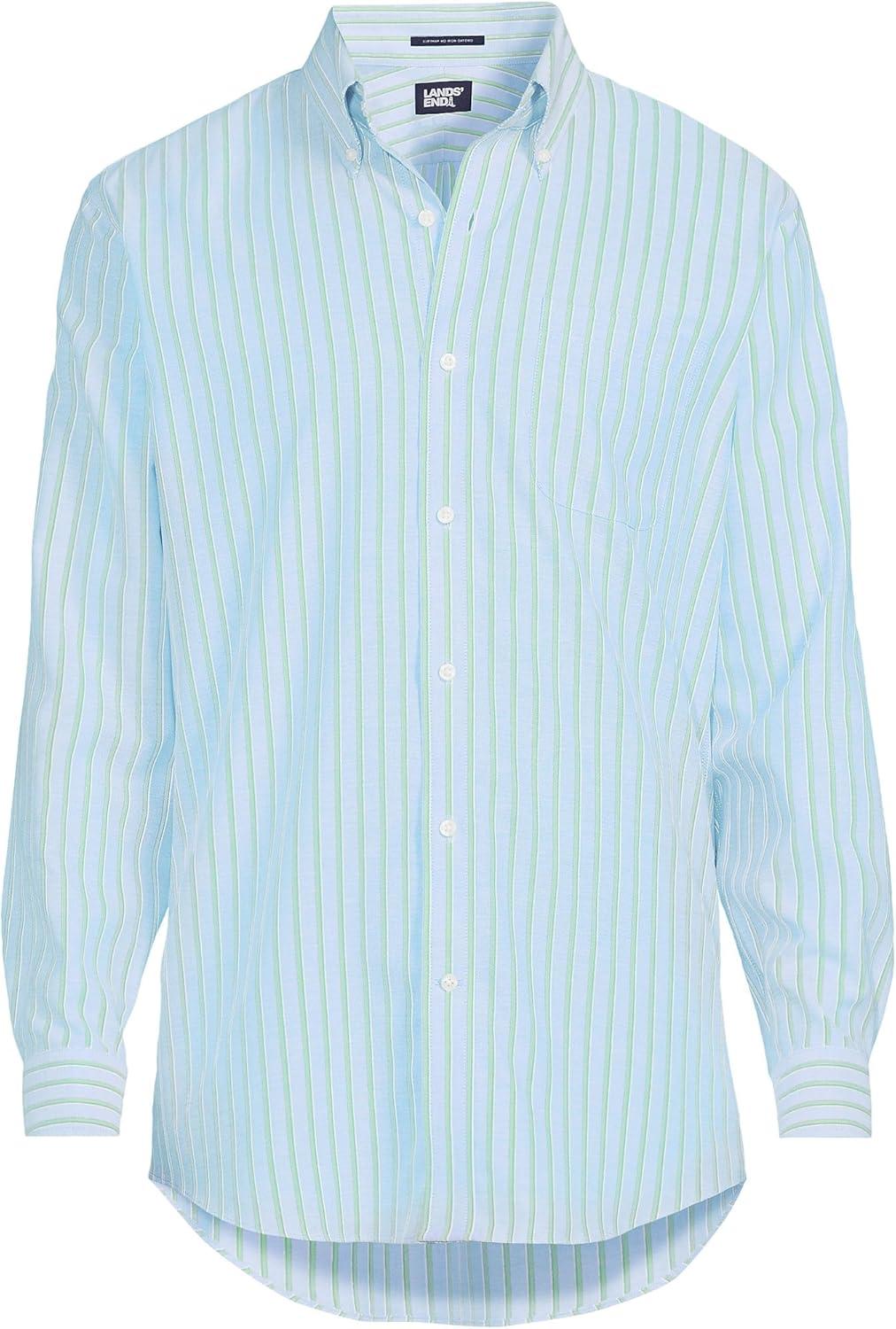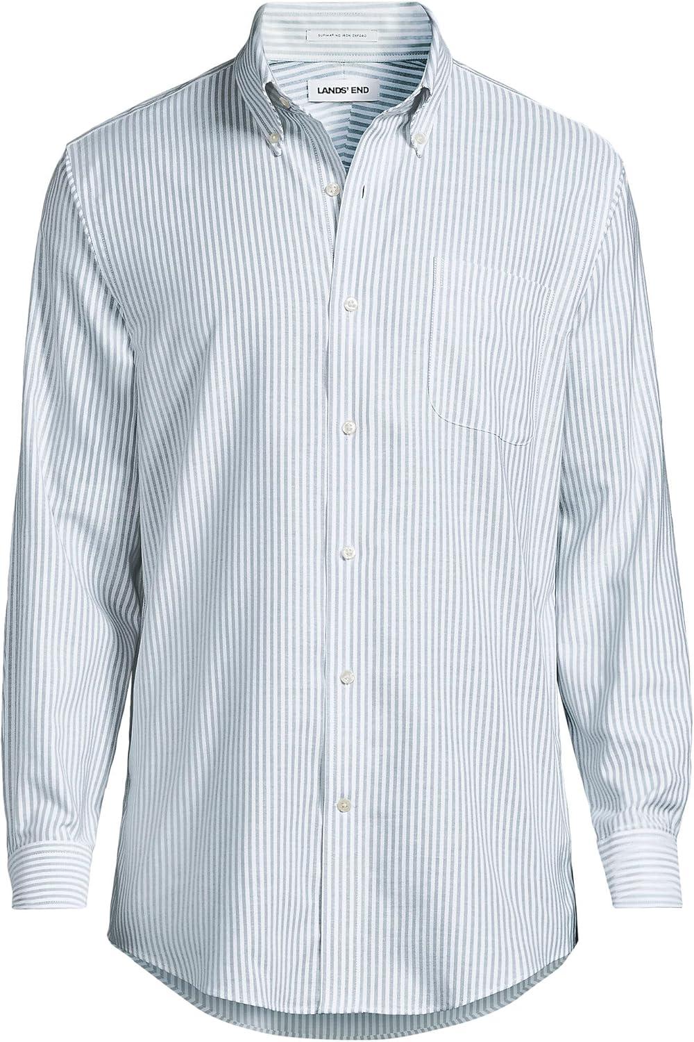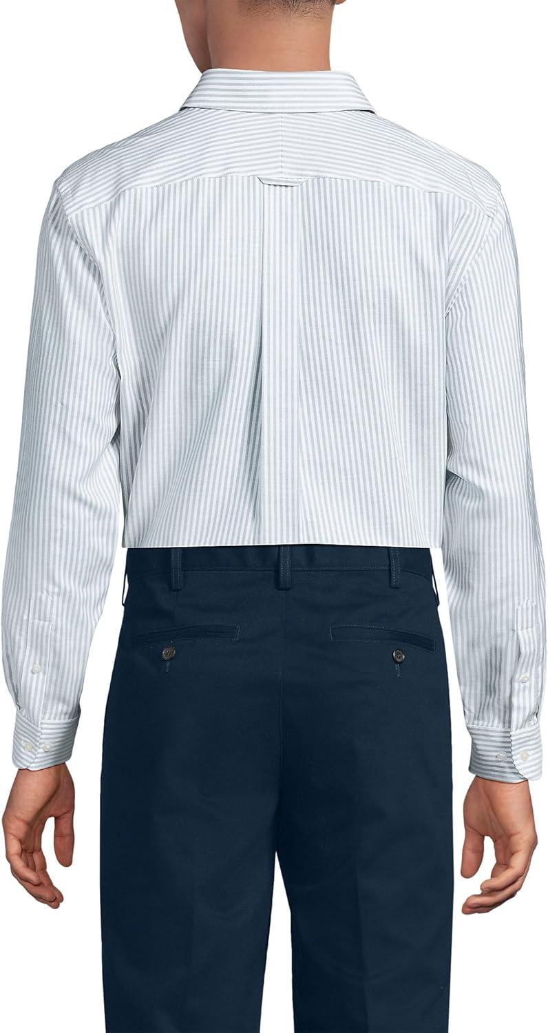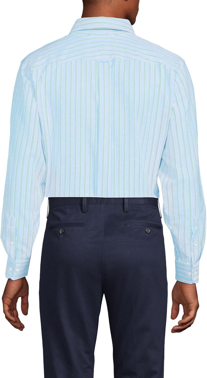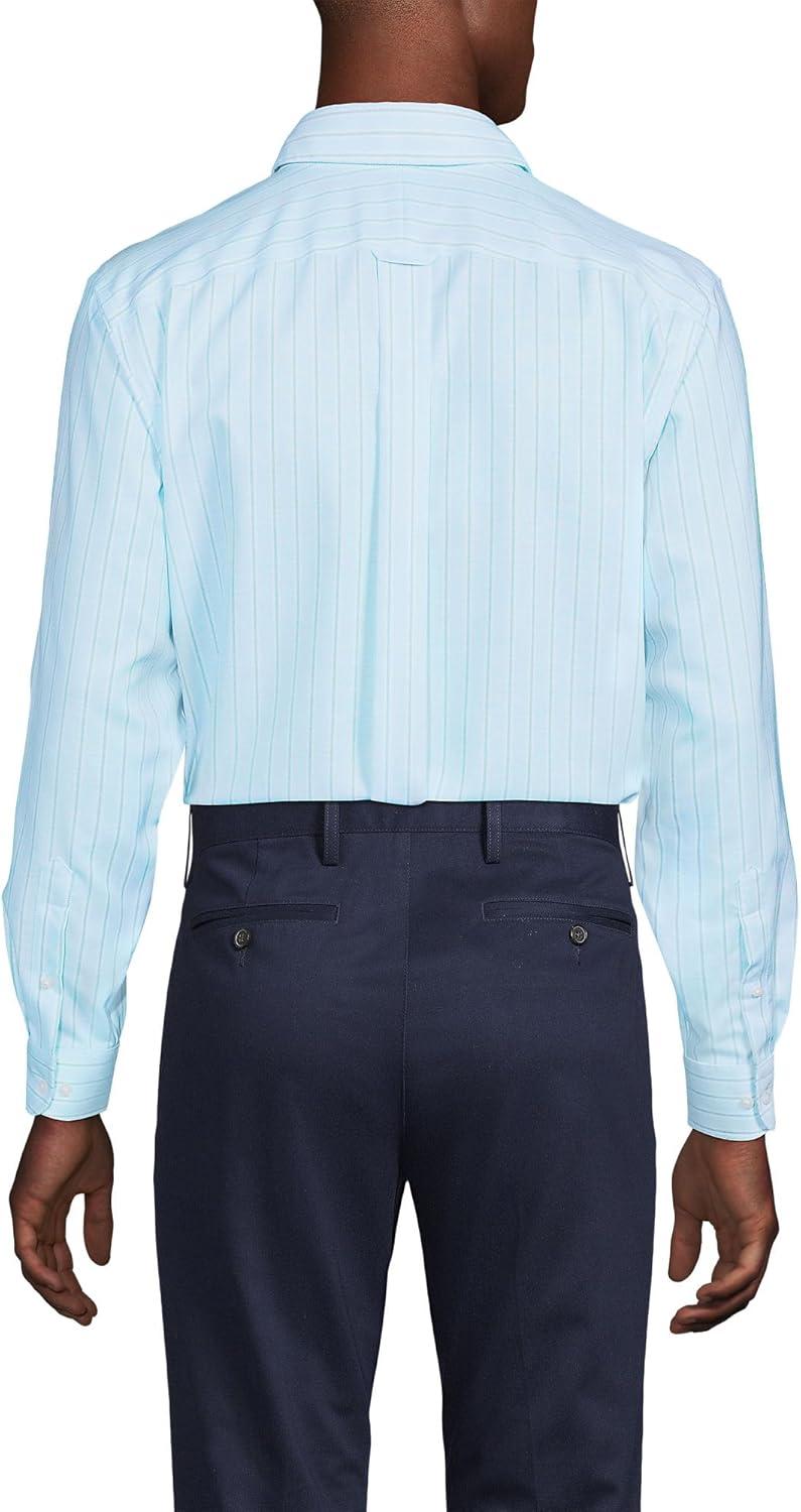 Lands’ End Men’s Traditional Fit Solid No Iron American-Grown Supima Oxford Dress Shirt(Bayshore Blue Stripe)