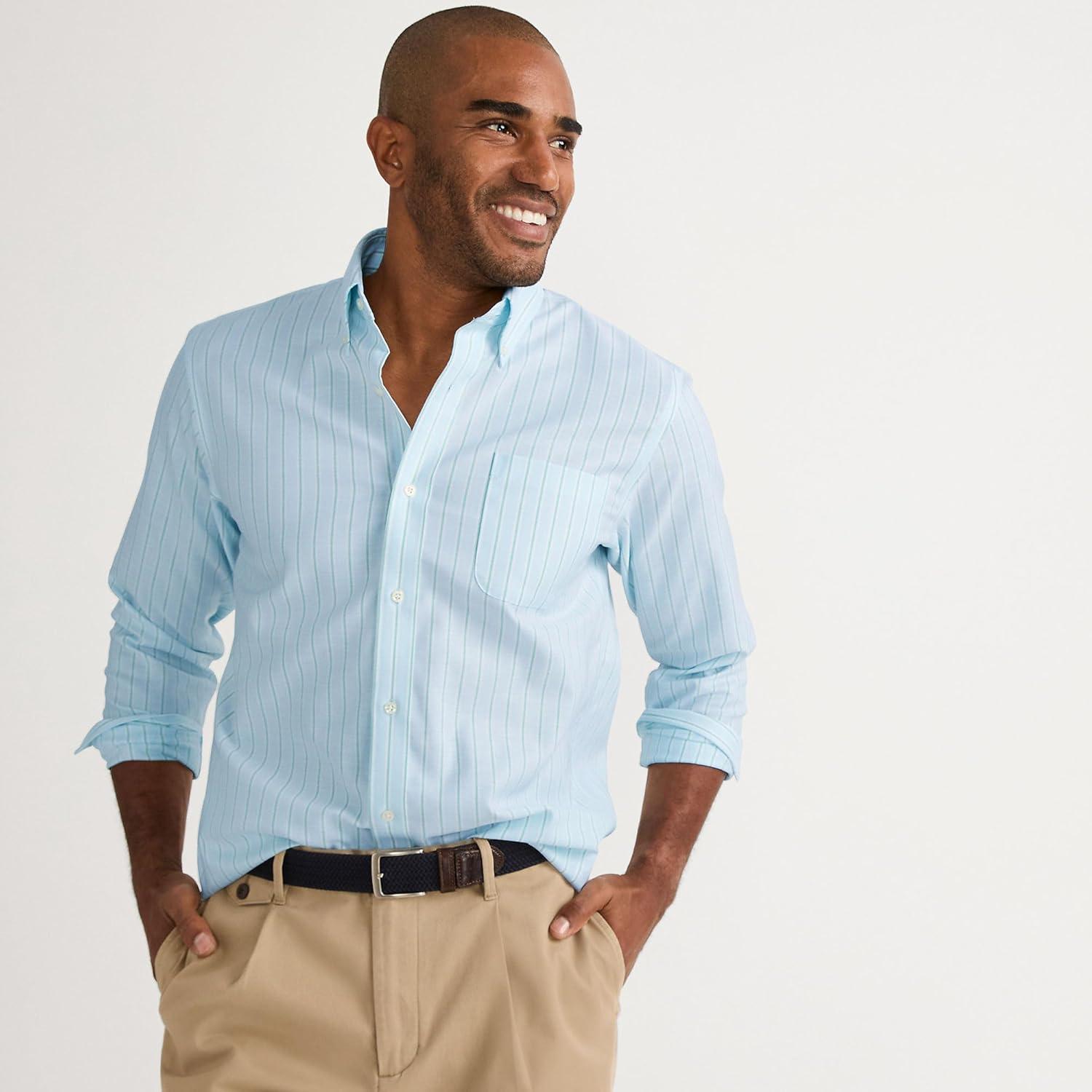 Lands’ End Men’s Traditional Fit Comfort-First Sail Rigger Oxford Shirt(Bay Water Green/Cobalt Stripe)