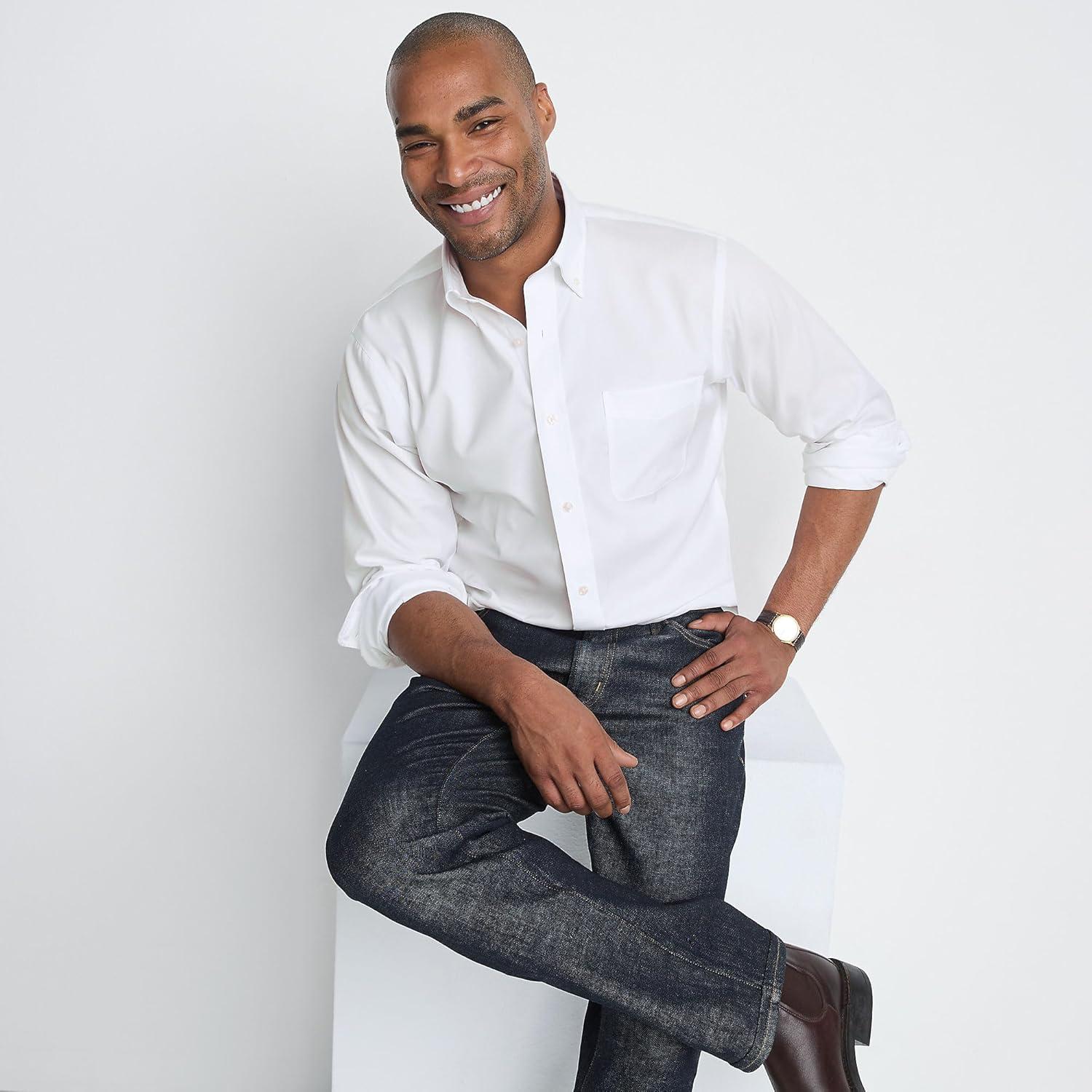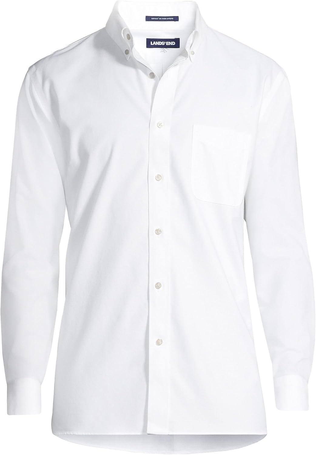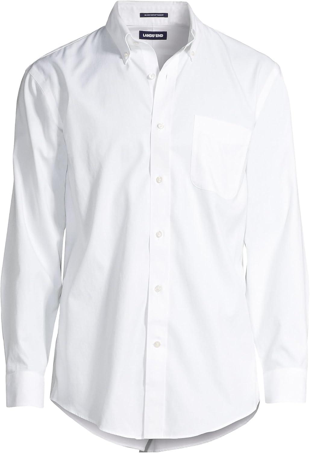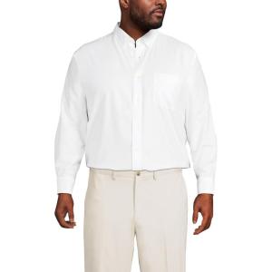 Lands’ End Men’s Traditional Fit Solid No Iron American-Grown Supima Oxford Dress Shirt(White)