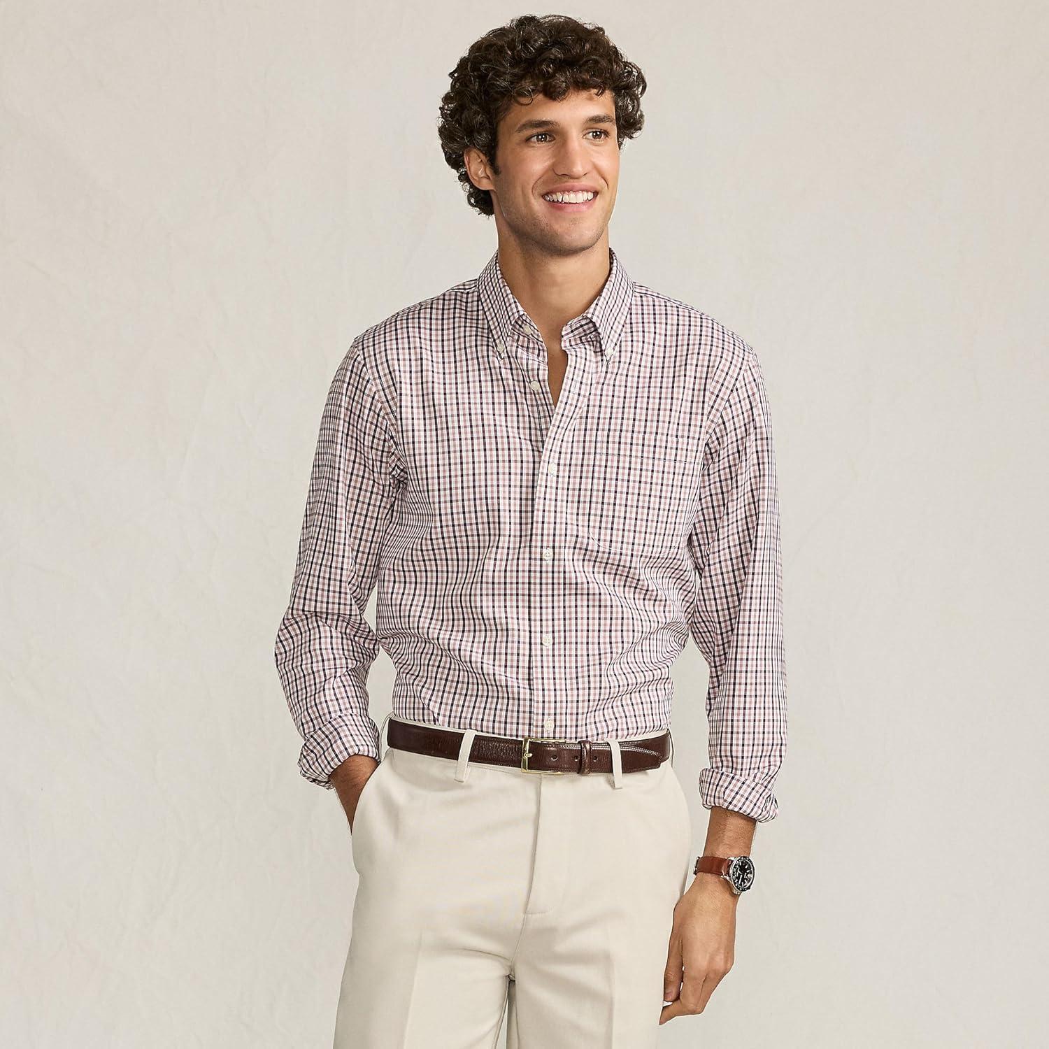 Lands’ End Men’s Traditional Fit Long Sleeve Travel Kit Shirt(Bourbon/White Plaid)