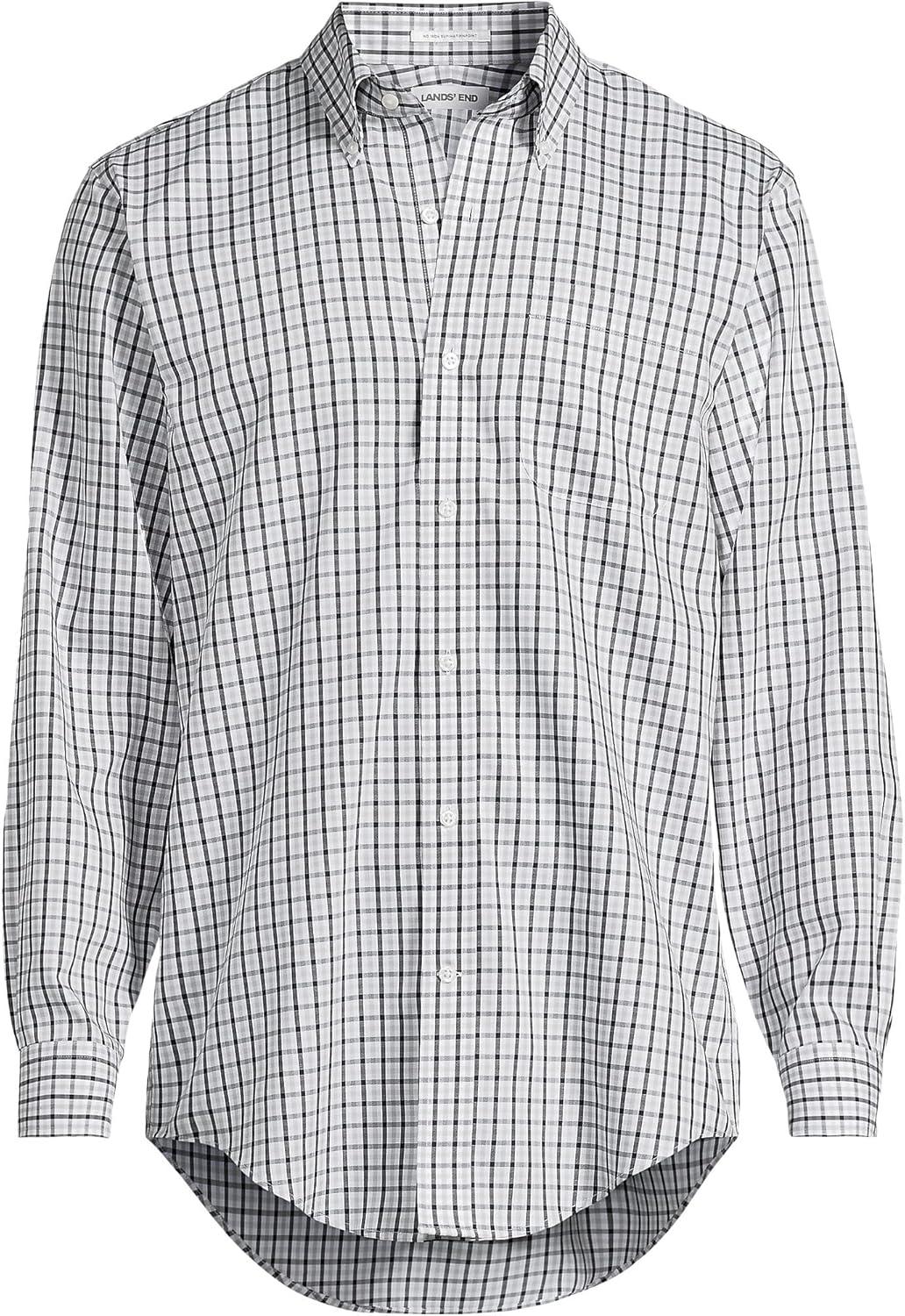 Lands’ End Men’s Traditional Fit Solid No Iron American-Grown Supima Pinpoint Buttondown Collar Dress Shirt(Ultimate Gray Multi Plaid)