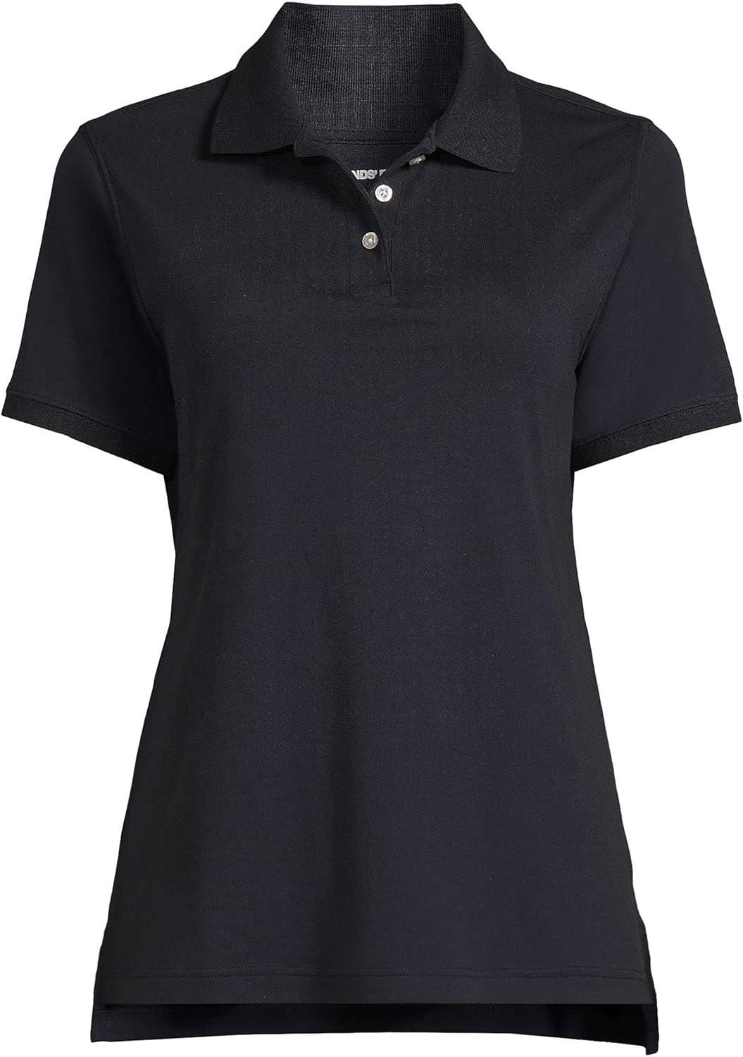 Lands’ End Essentials Women’s Short Sleeve All Day Comfort Polo Shirt – 100% Cotton Won’t Shrink Pill Fade(Black)