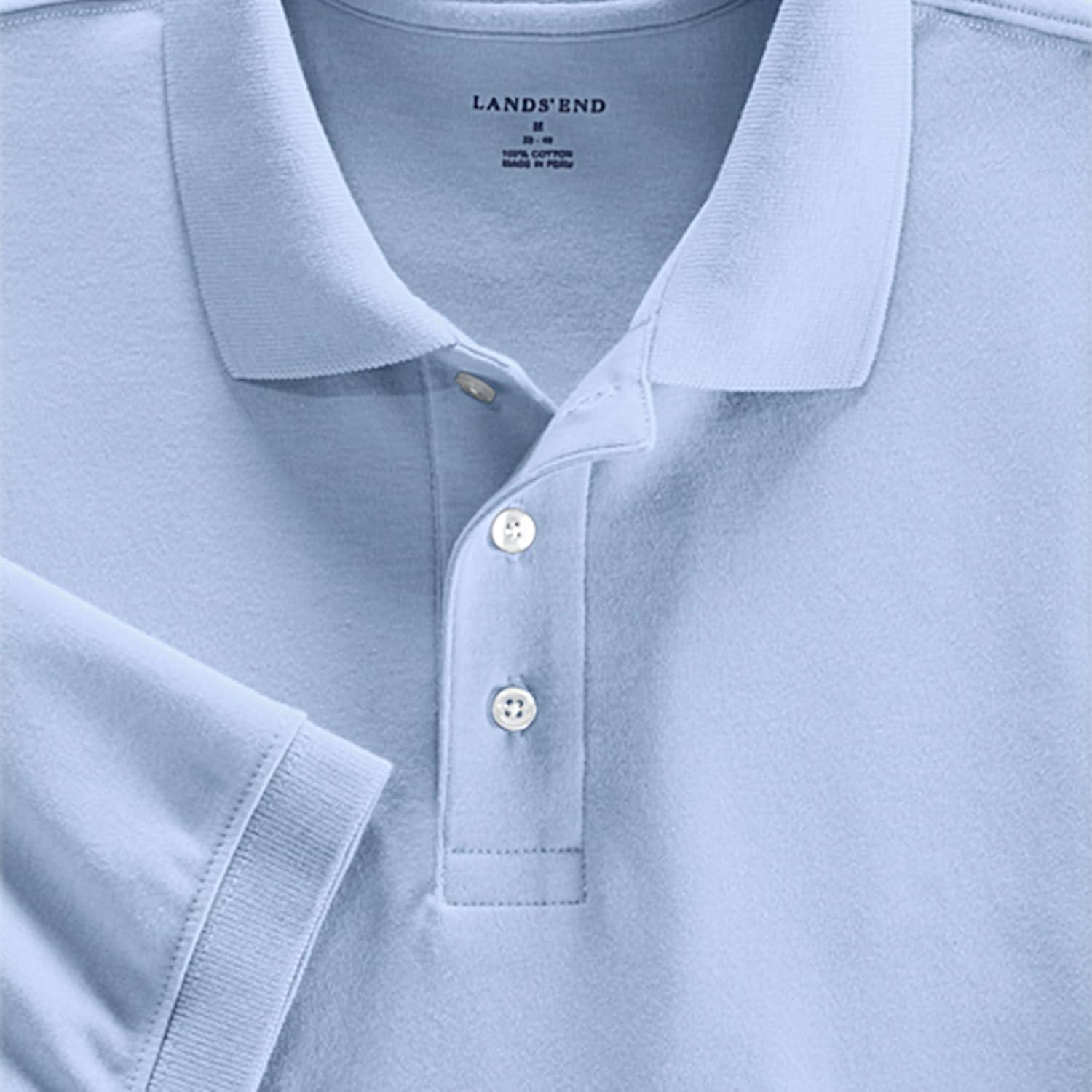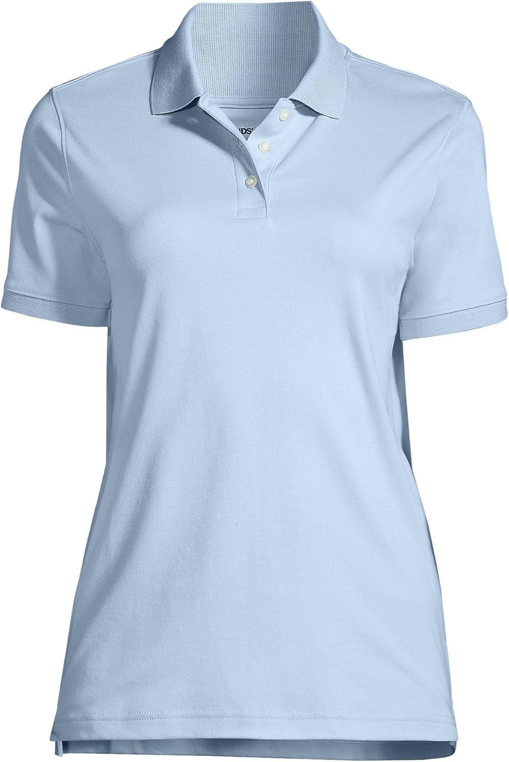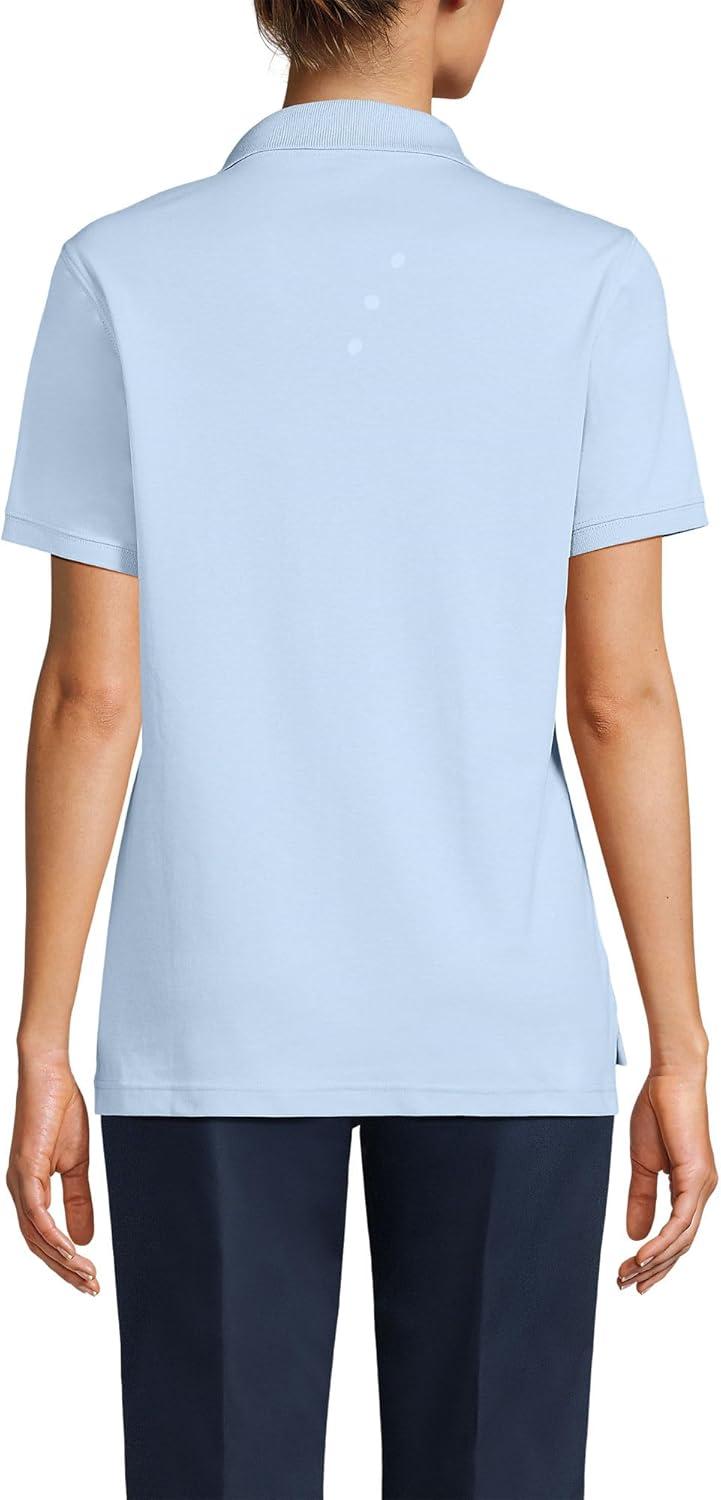 Lands’ End Essentials Women’s Short Sleeve All Day Comfort Polo Shirt – 100% Cotton Won’t Shrink Pill Fade(Blue)