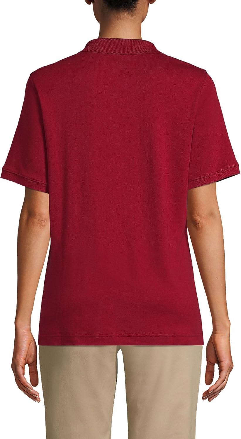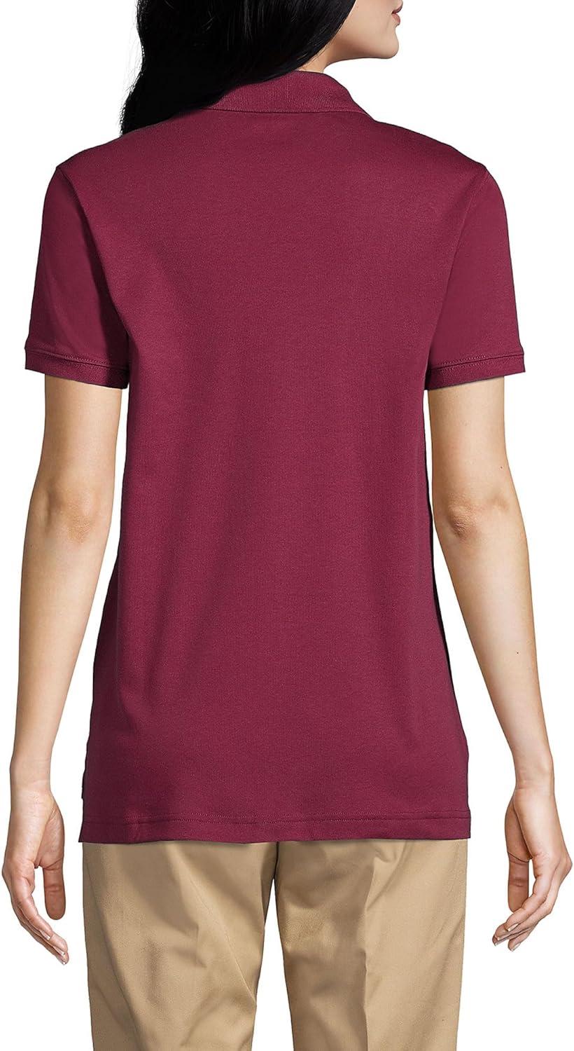 Lands’ End Essentials Women’s Short Sleeve All Day Comfort Polo Shirt – 100% Cotton Won’t Shrink Pill Fade(Garnet)