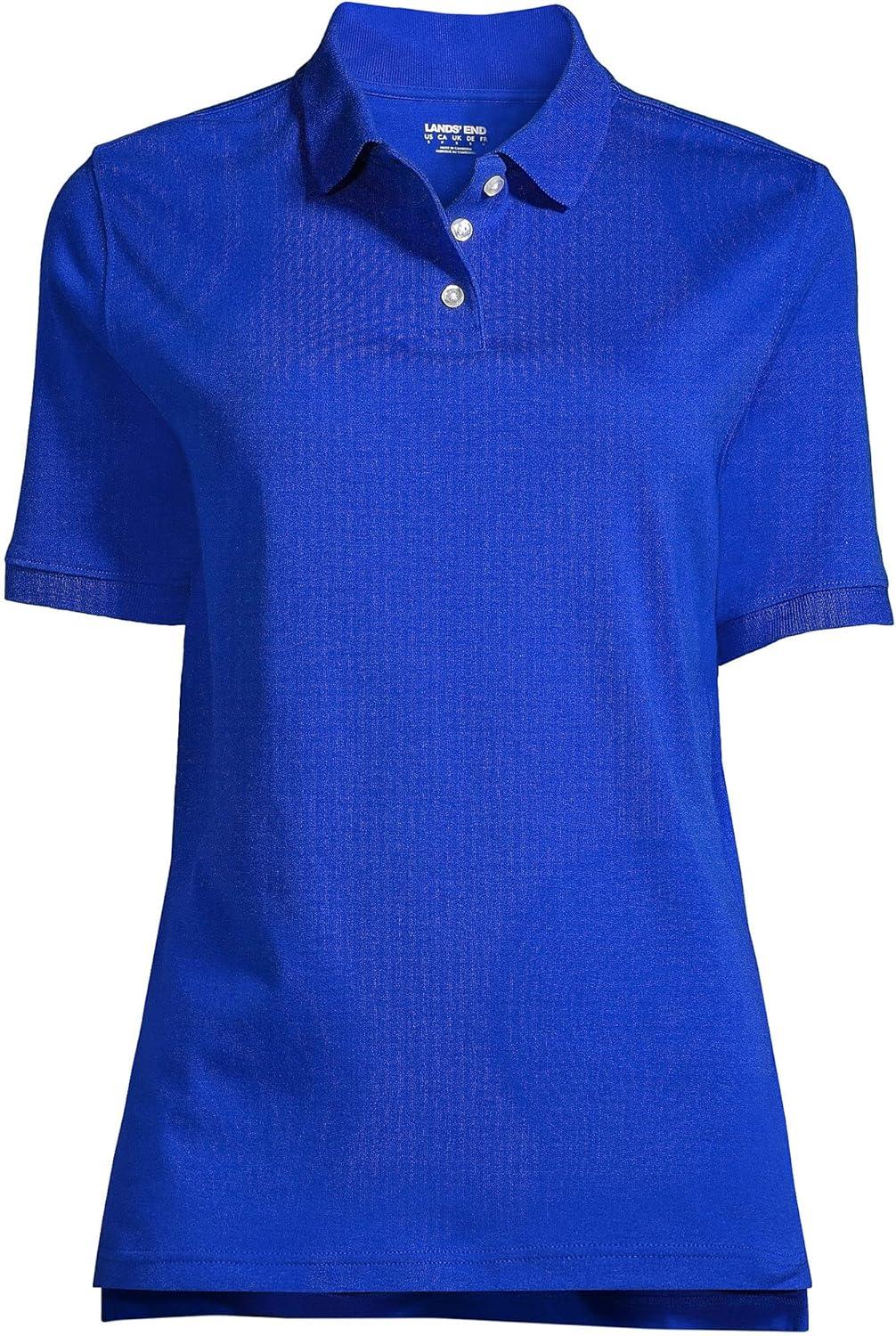 Lands’ End Essentials Women’s Short Sleeve All Day Comfort Polo Shirt – 100% Cotton Won’t Shrink Pill Fade(Cobalt)