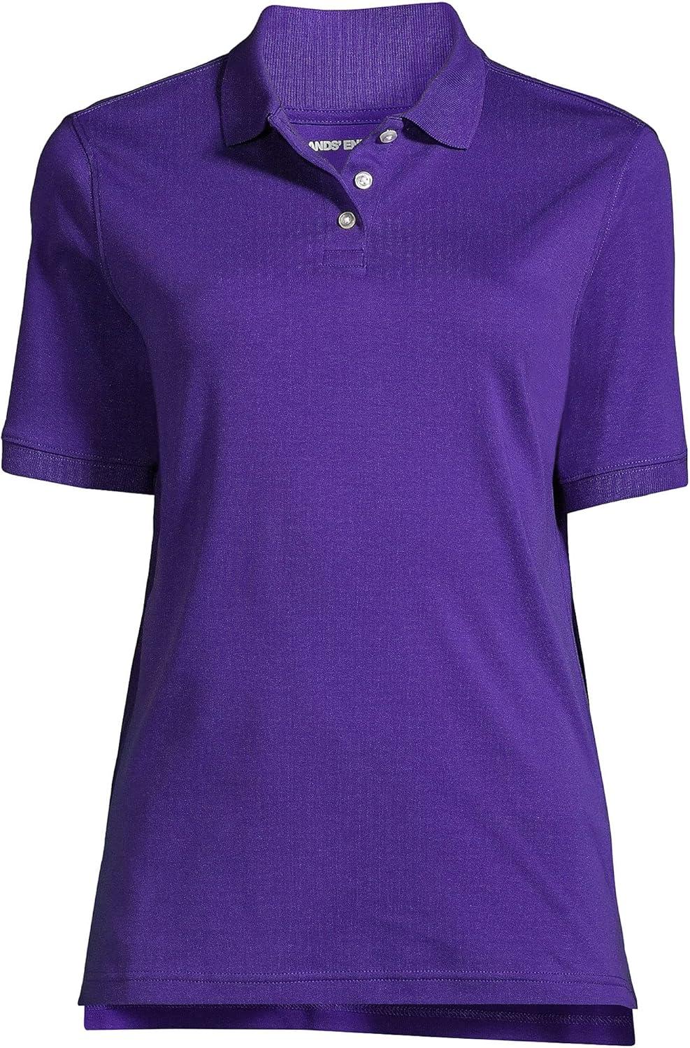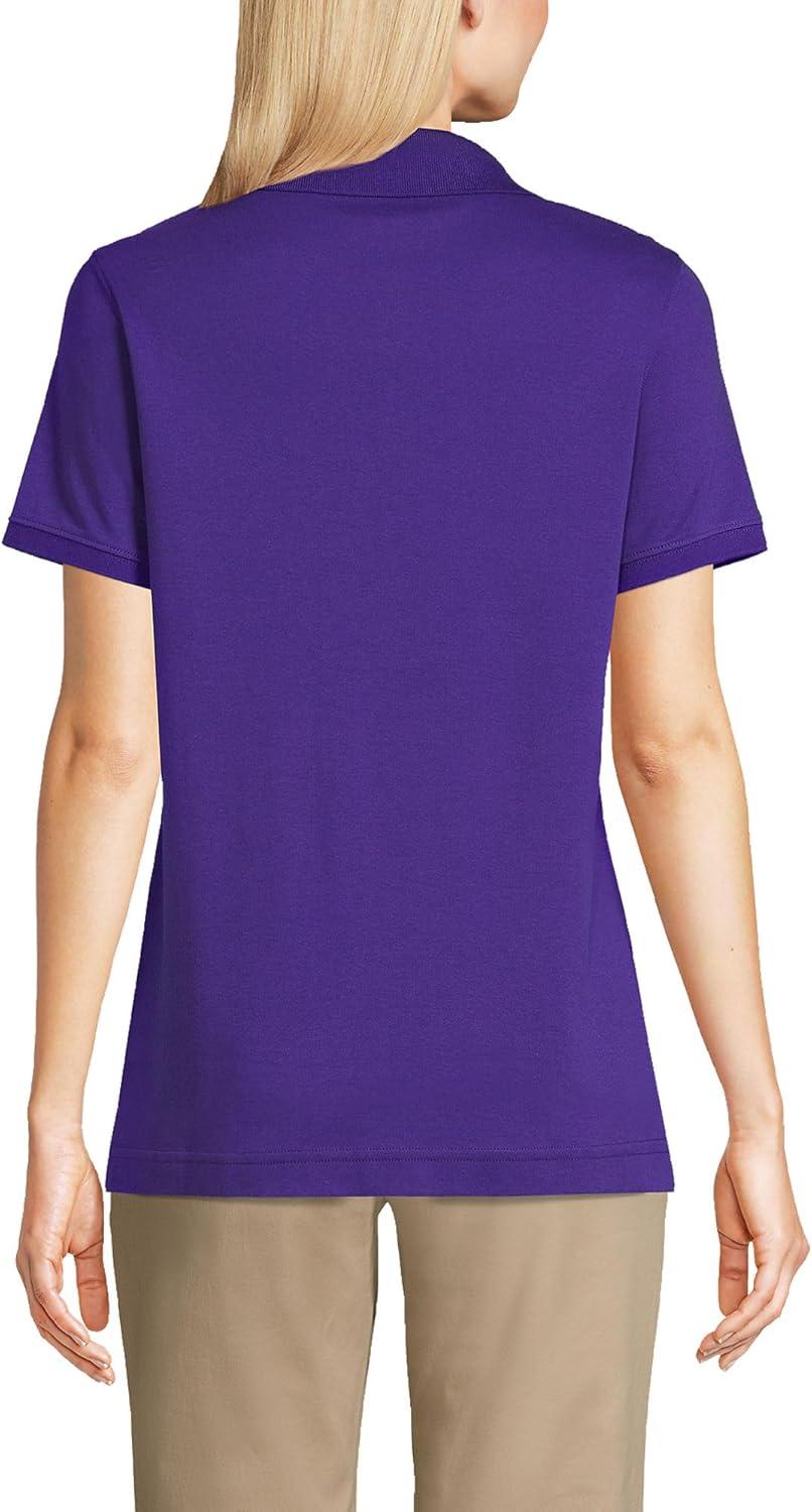 Lands’ End Essentials Women’s Short Sleeve All Day Comfort Polo Shirt – 100% Cotton Won’t Shrink Pill Fade(Deep Purple)