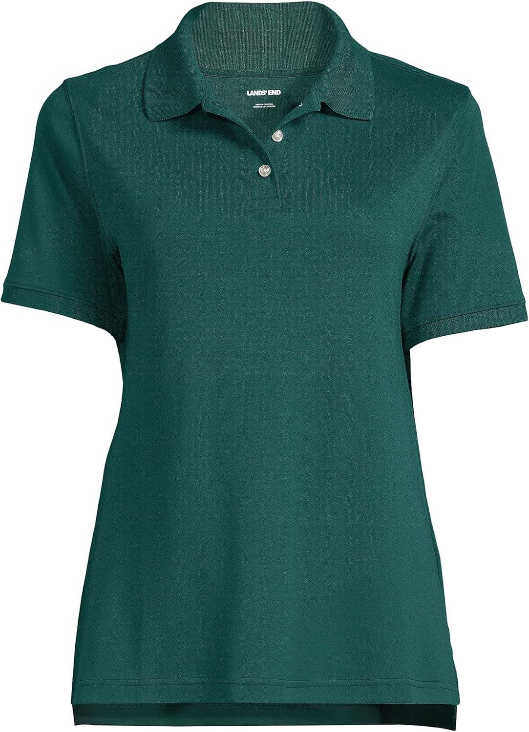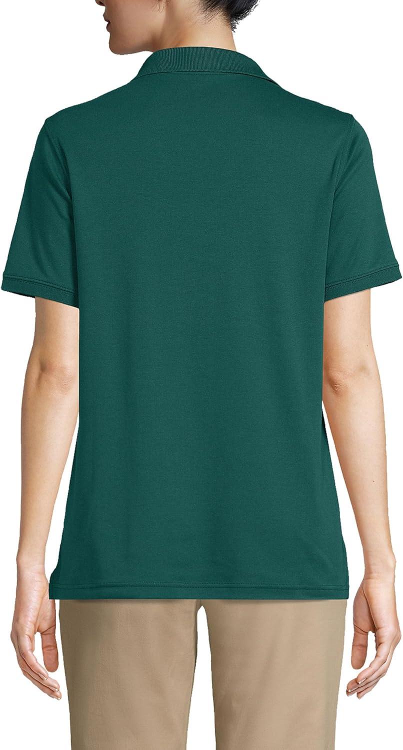 Lands’ End Essentials Women’s Short Sleeve All Day Comfort Polo Shirt – 100% Cotton Won’t Shrink Pill Fade(Evergreen)