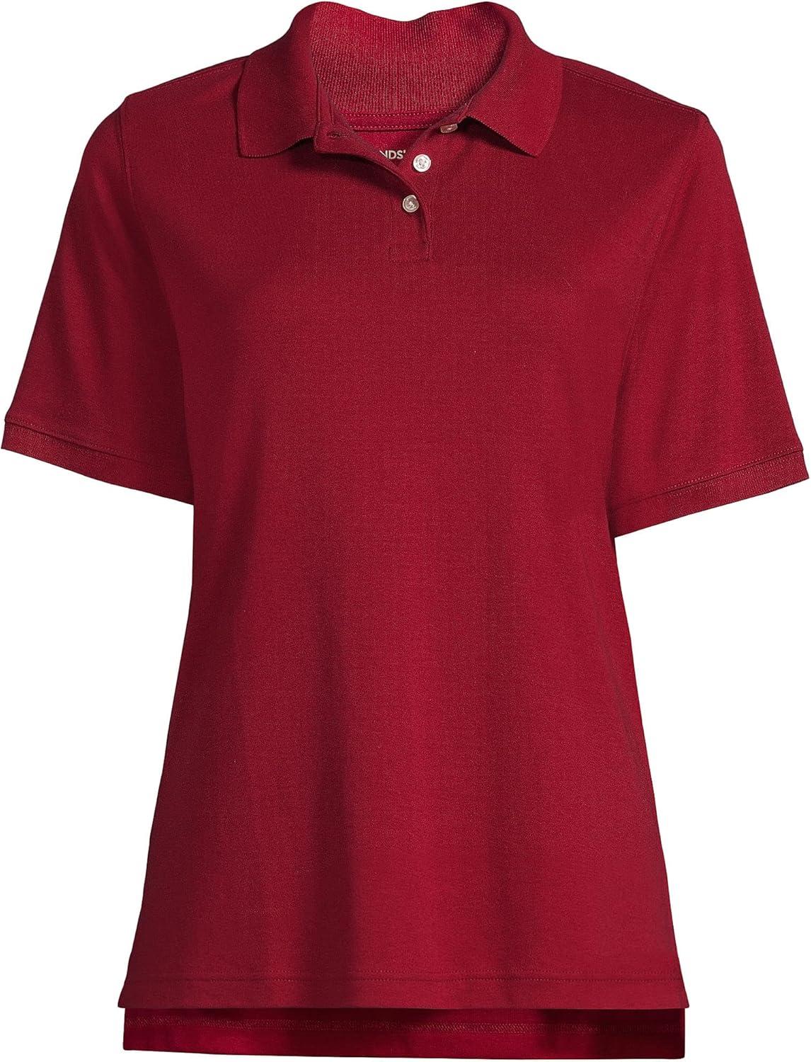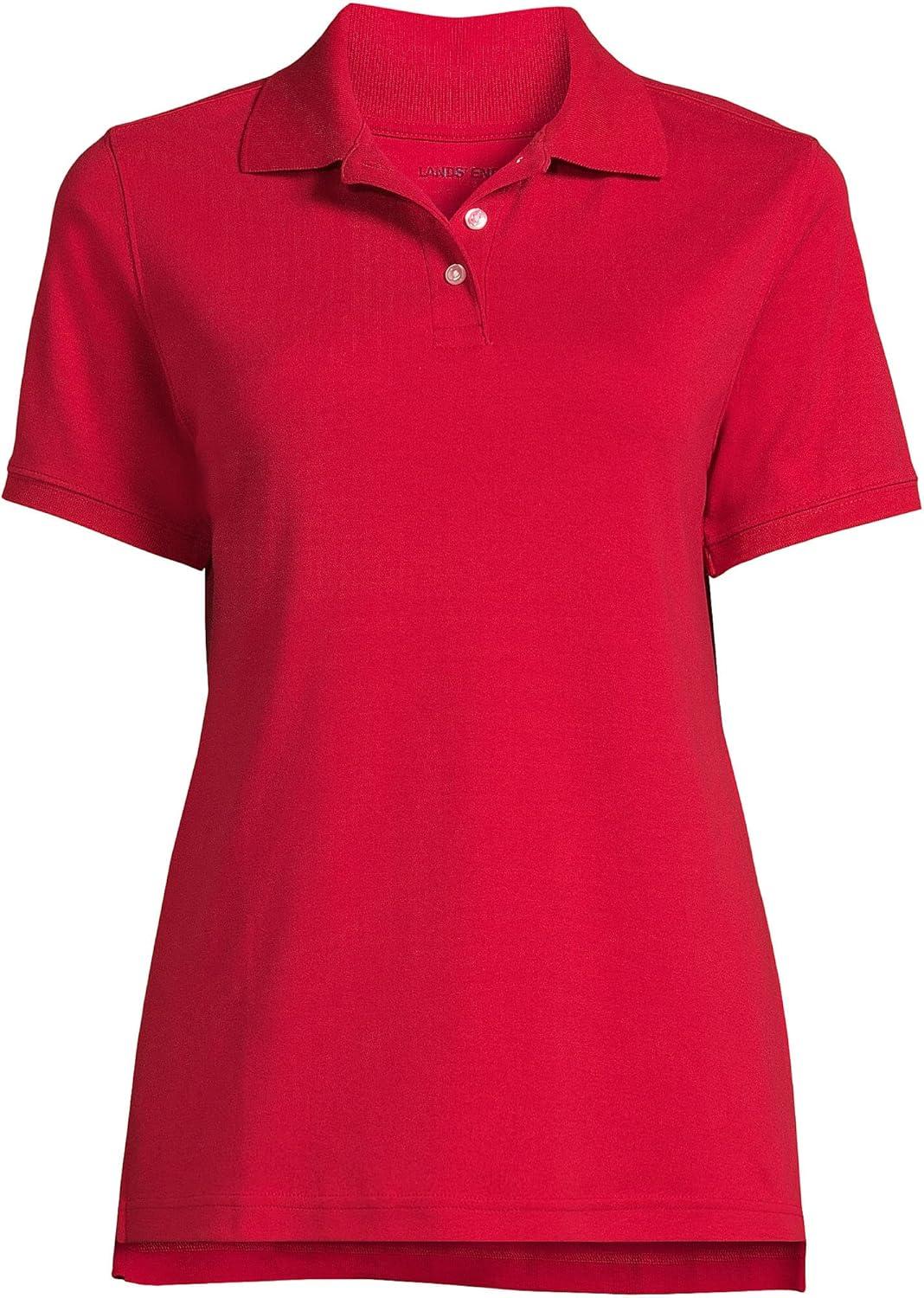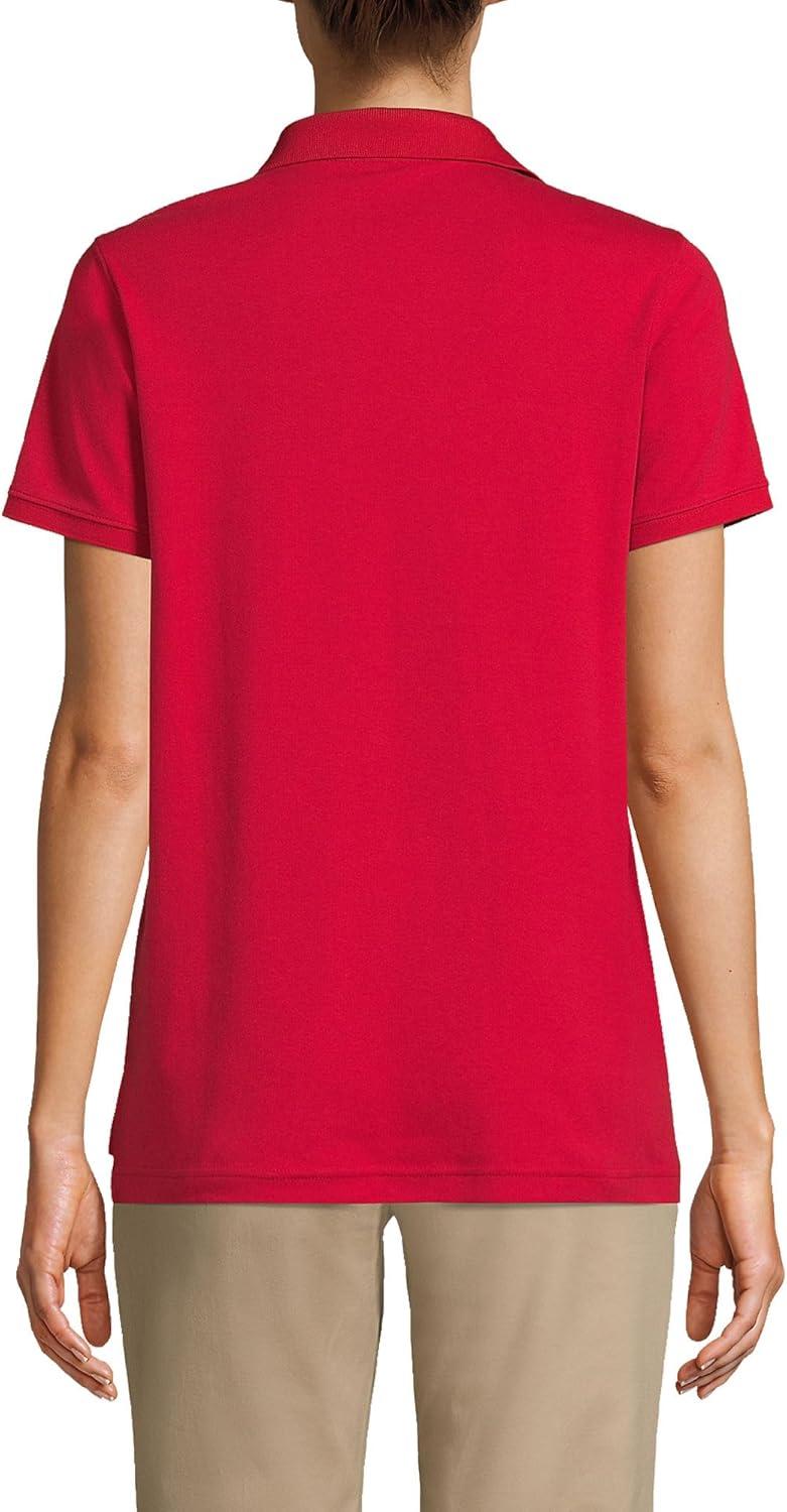 Lands’ End Essentials Women’s Short Sleeve All Day Comfort Polo Shirt – 100% Cotton Won’t Shrink Pill Fade(Red)