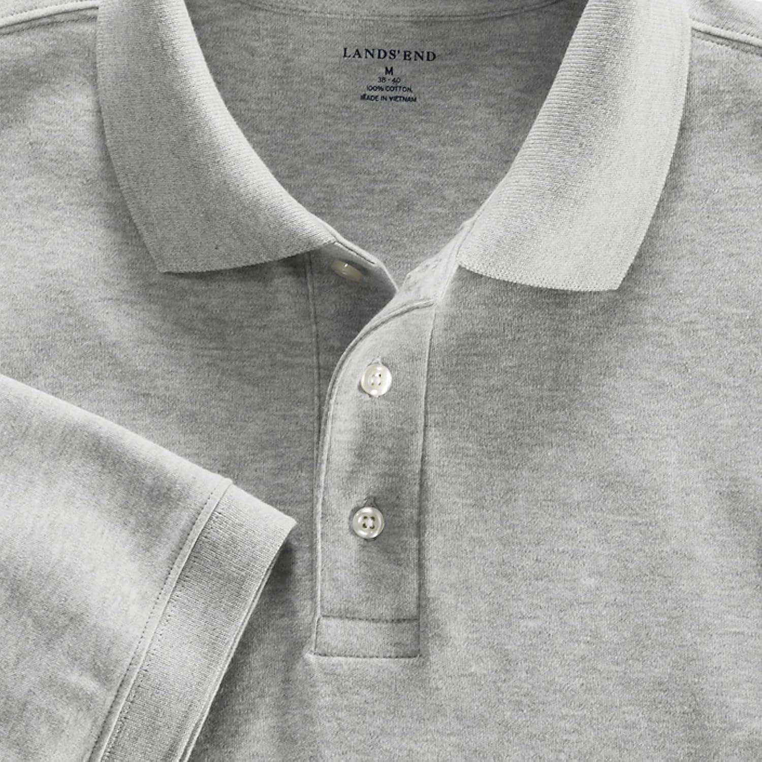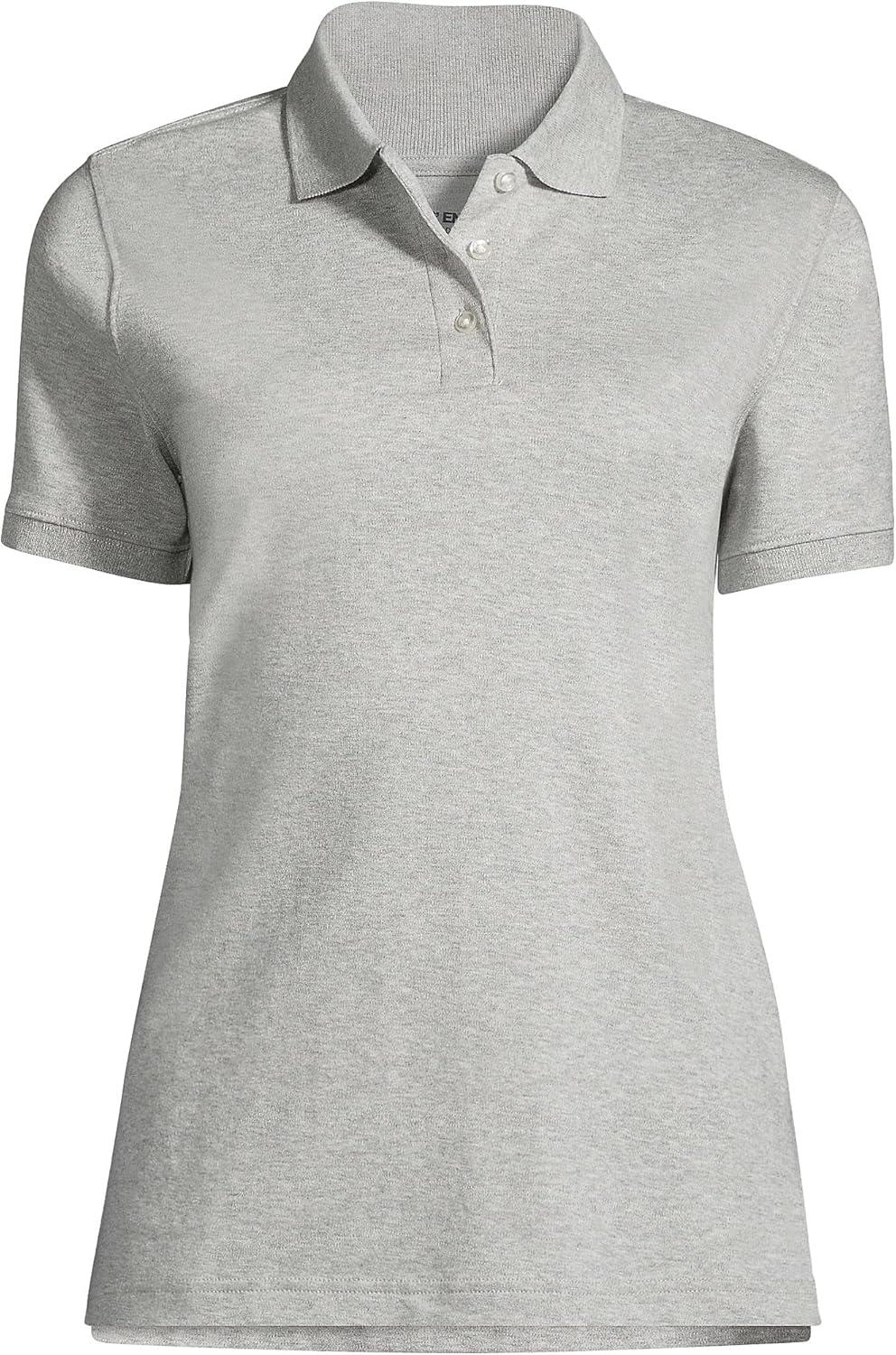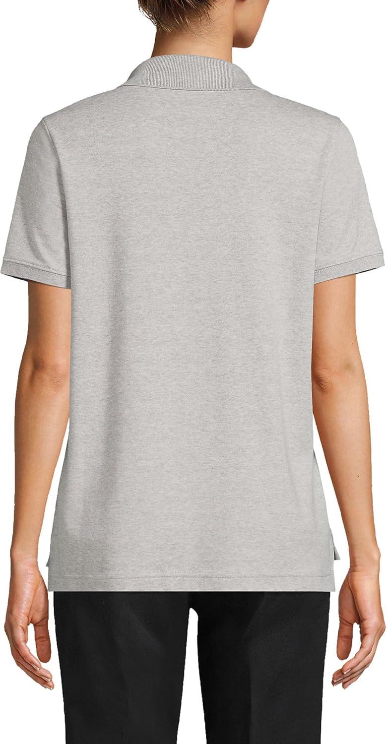 Lands’ End Essentials Women’s Short Sleeve All Day Comfort Polo Shirt – 100% Cotton Won’t Shrink Pill Fade(Gray Heather)
