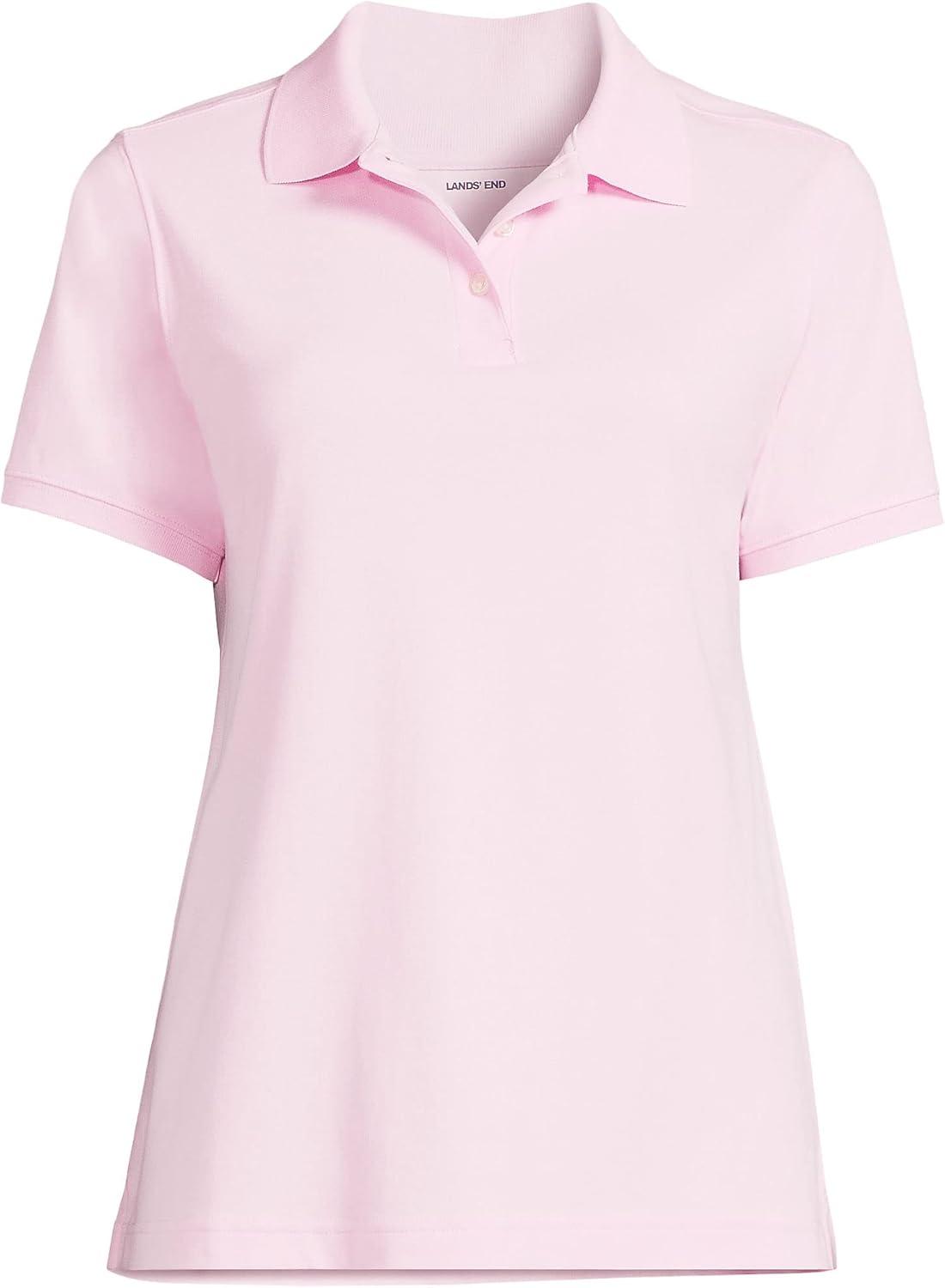 Lands’ End Essentials Women’s Short Sleeve All Day Comfort Polo Shirt – 100% Cotton Won’t Shrink Pill Fade(Ice Pink)