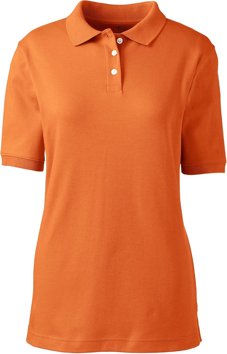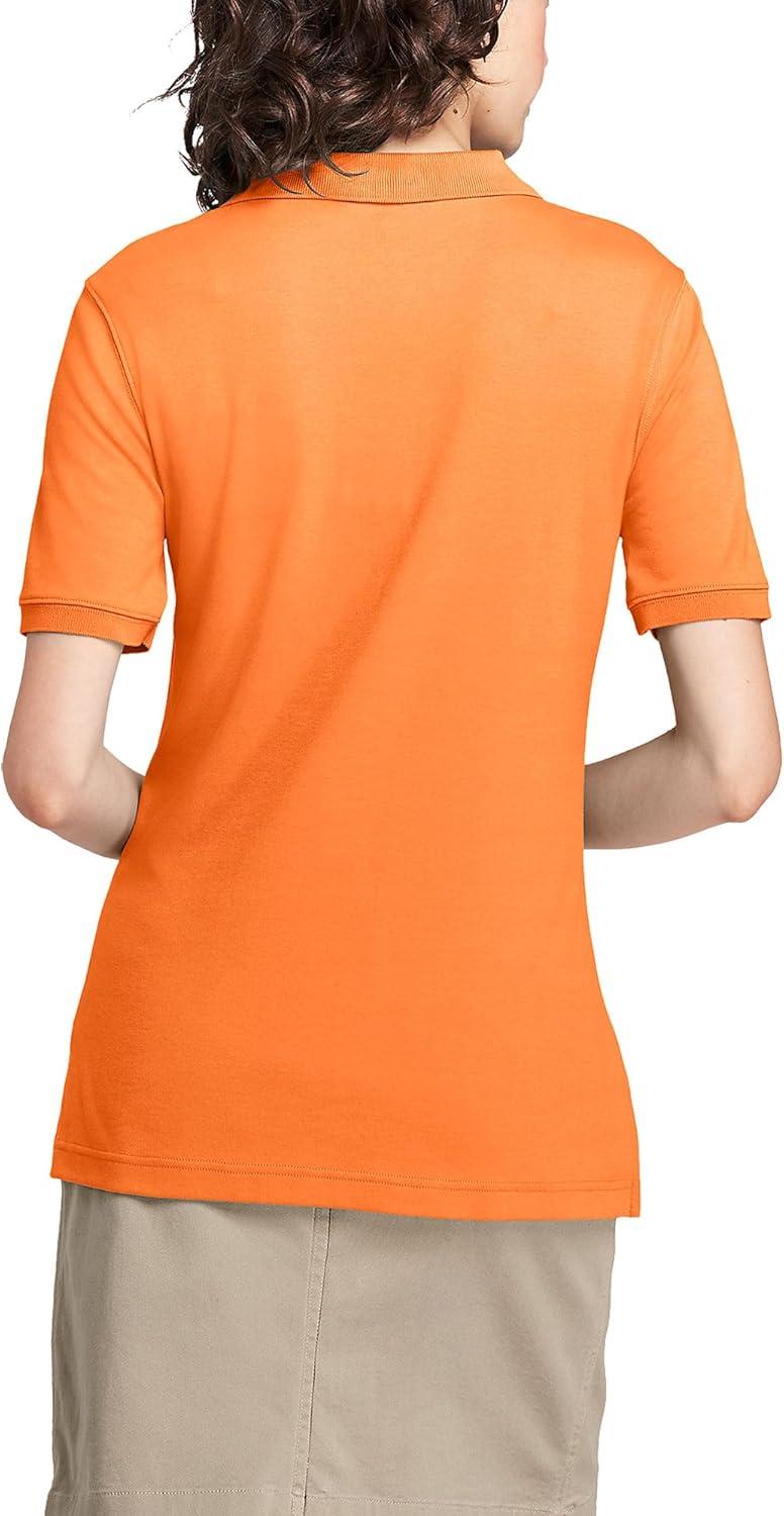 Lands’ End Essentials Women’s Short Sleeve All Day Comfort Polo Shirt – 100% Cotton Won’t Shrink Pill Fade(Orange Spice)