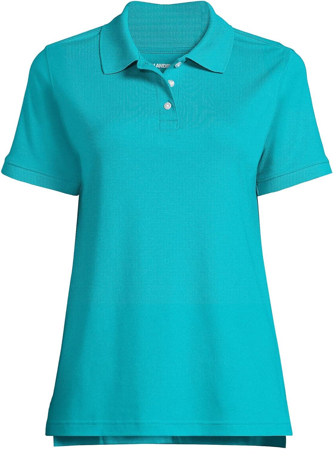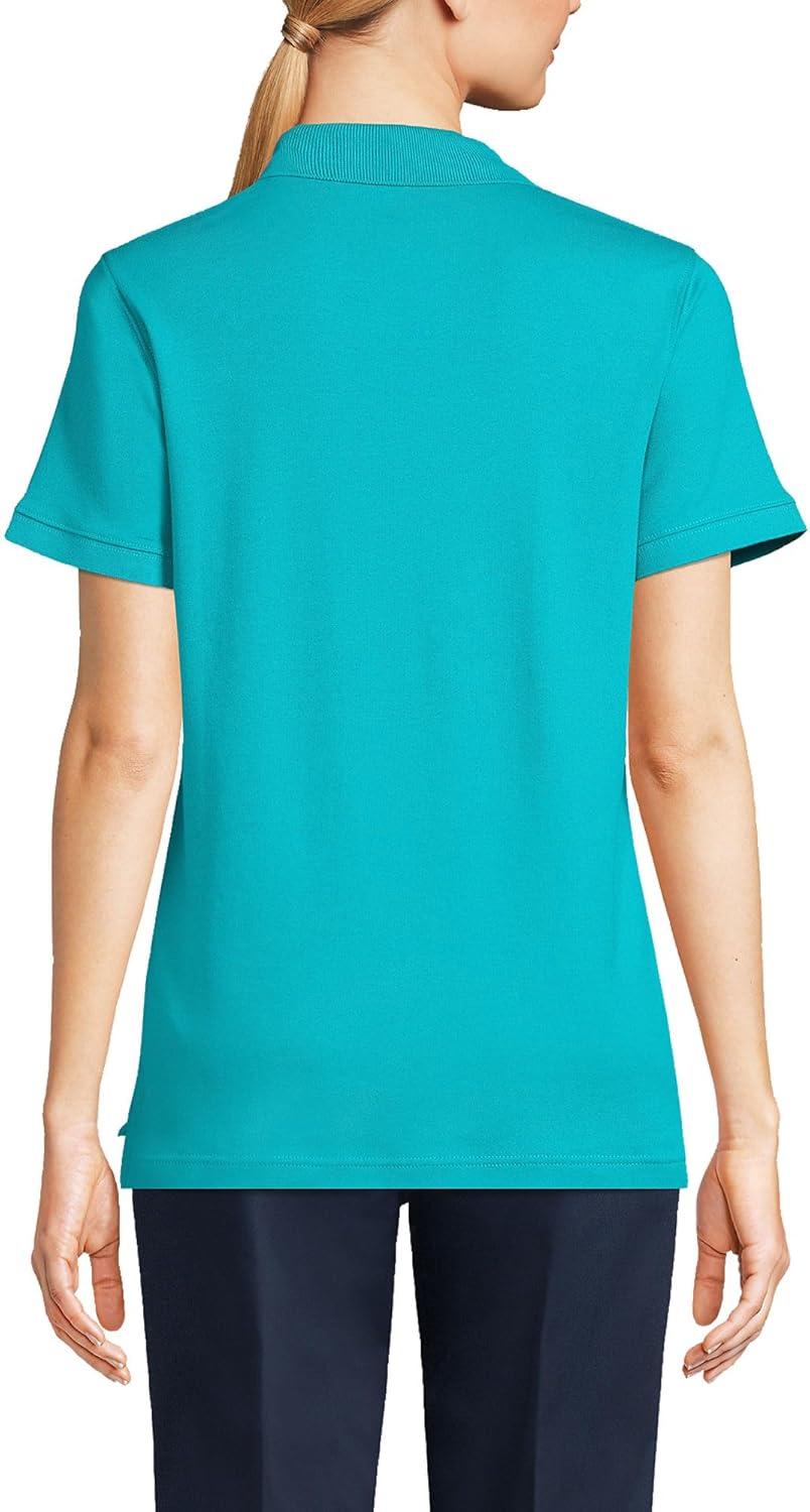 Lands’ End Essentials Women’s Short Sleeve All Day Comfort Polo Shirt – 100% Cotton Won’t Shrink Pill Fade(Teal Breeze)