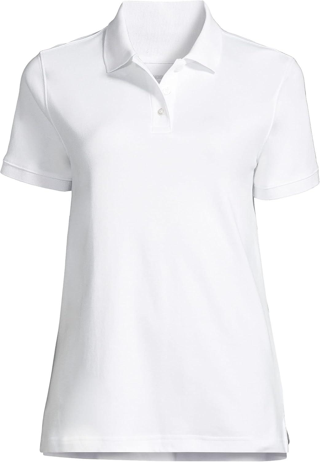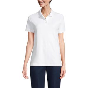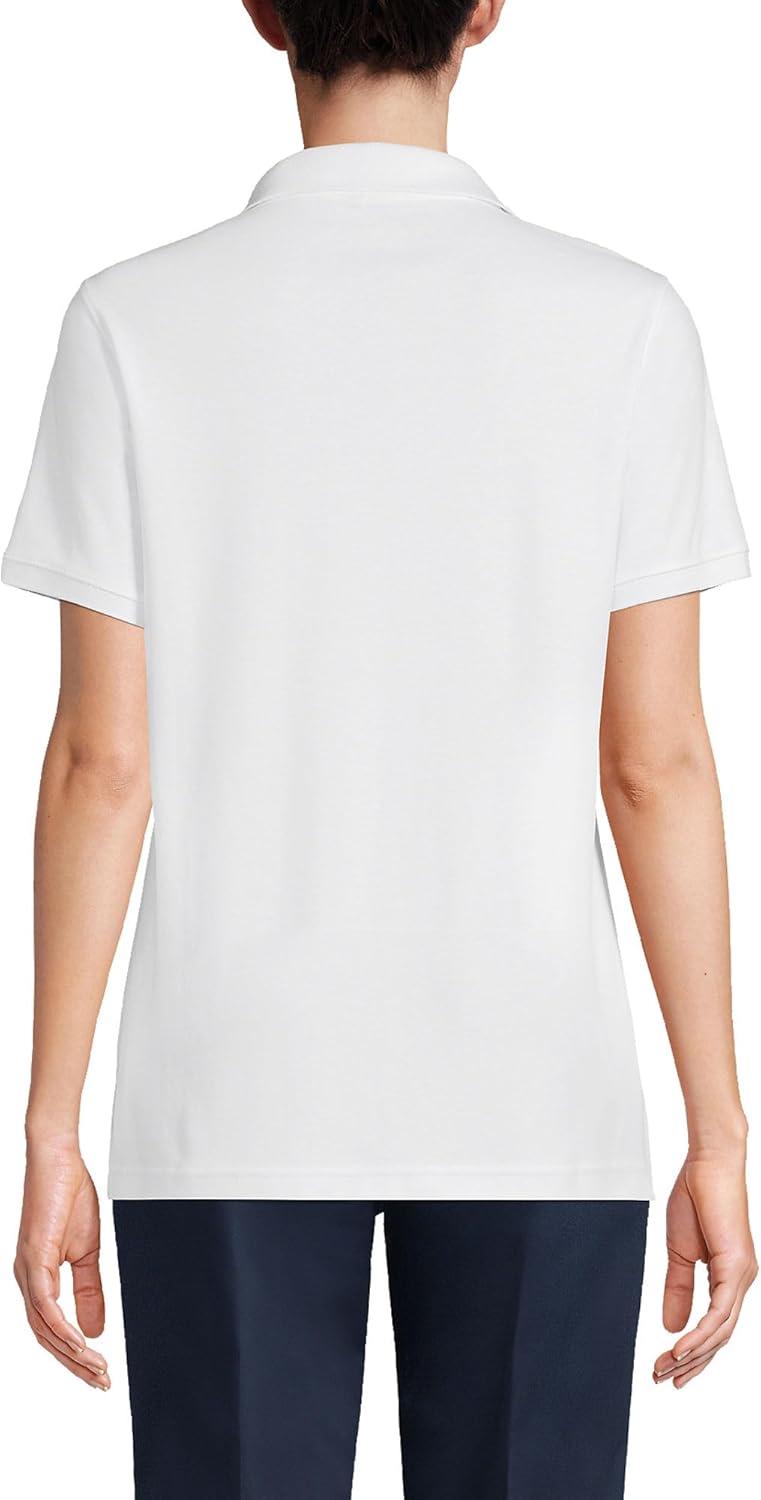 Lands’ End Essentials Women’s Short Sleeve All Day Comfort Polo Shirt – 100% Cotton Won’t Shrink Pill Fade(White)